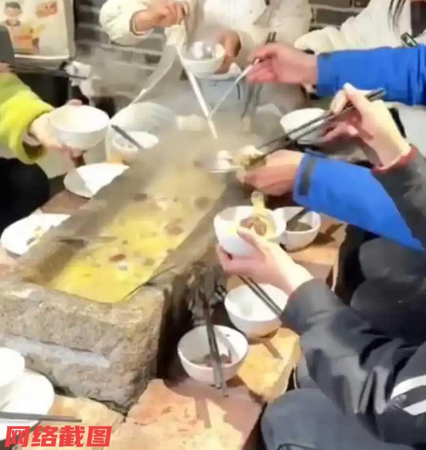 湖南永州有家餐馆推出了一道特色项目。 这里让餐馆取名为石槽火锅,顾名思义就是让