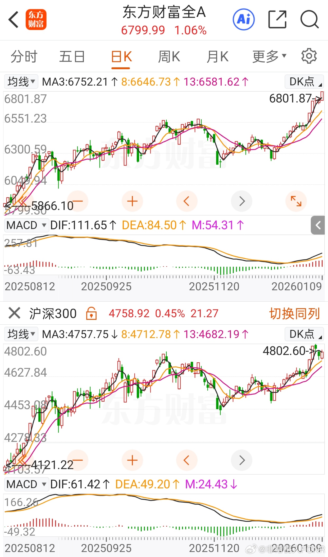 指数16连阳 板块月飙50% 大盘还能走多远2026/1/9/非常观点|核心提示:1、三大指数似有加速之势,是诱多赶顶抑或再上台阶,这已经不重要,因为A股不按常理出牌是本性,而这次能一雪前耻走出令人瞠目结舌的多头行情吗?至少现在存疑,太多的不确定性萦绕着市场,上证16连阳,强得出窍,某些热门板块一个月飙涨50%,先不问是否有基本面支撑,以这样的冲刺速度再多玩一会儿,会不会力竭而亡,显然不可持续,飞得越高,跌得更惨的悲剧值得警醒。2、尽管本观点场外收益再创新高,但并无喜悦之色,高低切换按部就班,近期清仓了若干盈利老基,对位上车长期表现更优标的,持仓的个别债基近半年来跌跌不休,一扫去年的风光,虽然仅亏损两个点,却创了该基历史最大回撤,从某种意义上来说,市场环境对不同类型资产影响不容小觑,有必要更为谨慎,好在本身就是多元配置,短期波动不致伤筋动骨。3、主力核心配置美基红利债基三剑客策略不动如山,辅以历史业绩优良回撤修复快速若干主动型基金作前锋,确保进退自如,无往不利。文中图例仅供参考,不作推荐用。