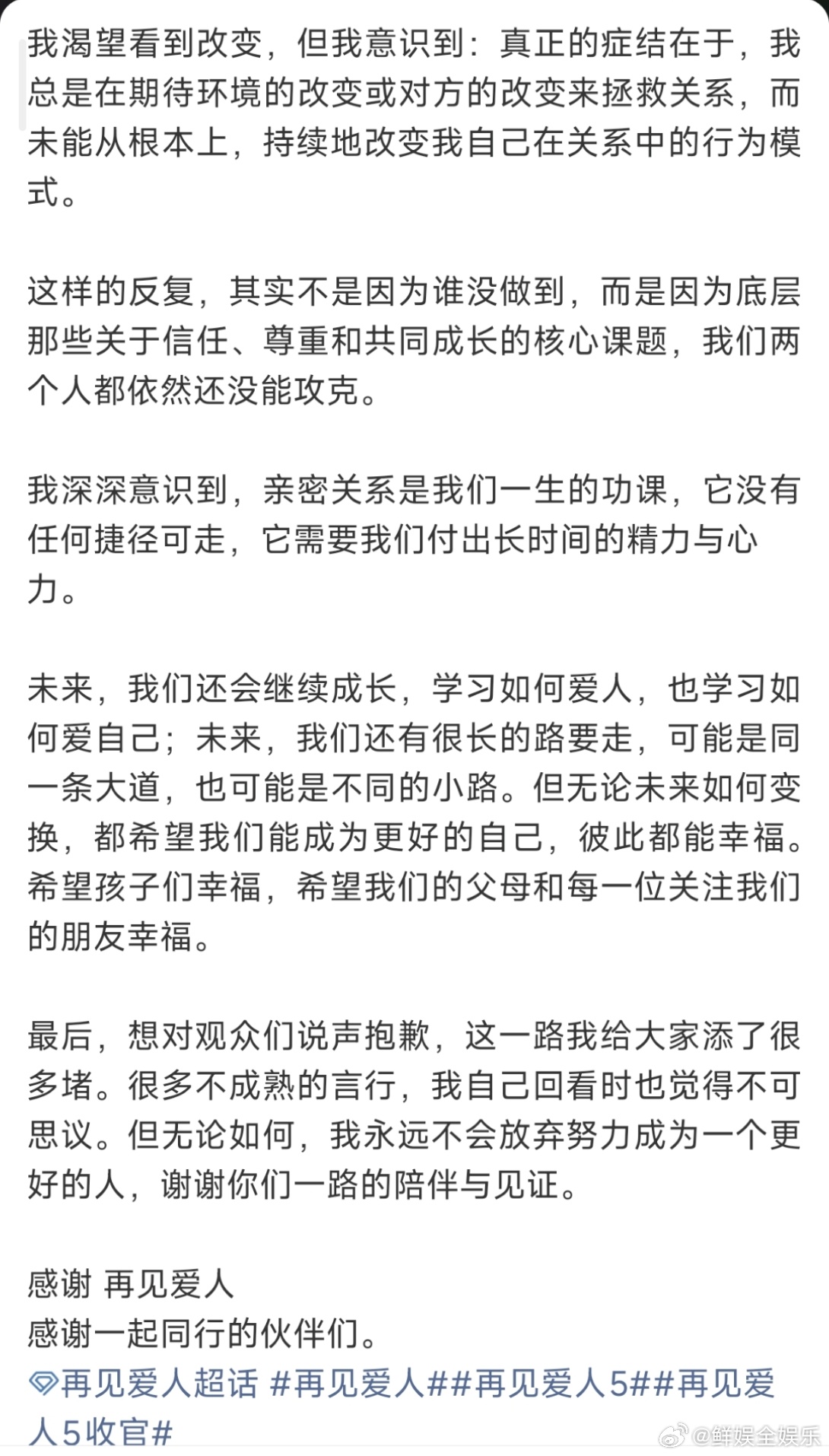 梁淞再见爱人收官发文再见爱人收官,梁淞发文!梁淞发文告别再见爱人梁淞回应最受观