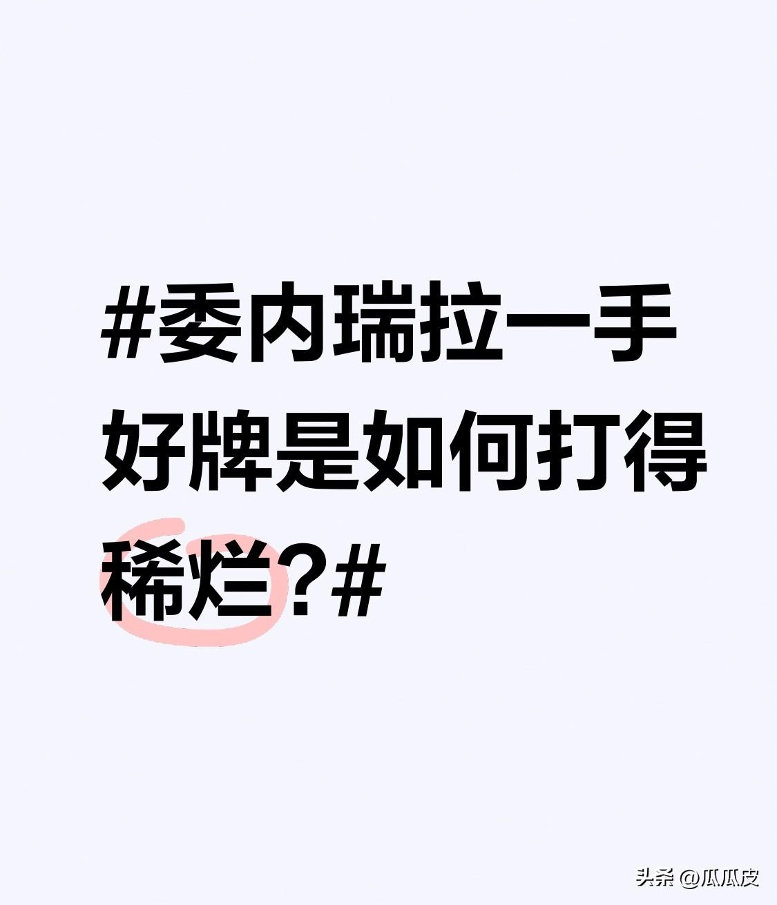 委内瑞拉一手好牌是如何打得稀烂? 委内瑞拉曾经那可是资源丰富,石油储量全球第一,妥妥的一手好牌。上世纪石油繁荣时,经济发展得相当不错,民众生活也安逸。 但后来就开始走下坡路了。过度依赖石油产业,经济结构单一,一旦国际油价下跌,国家收入锐减。国内政策也有问题,大规模国有化让企业效率降低,生产积极性受挫。再加上高福利政策难以为继,财政压力巨大。 同时,外部制裁不断,让本就脆弱的经济雪上加霜。通货膨胀严重,物资匮乏,民众生活质量大幅下降,曾经的优势如今成了困境,好牌就这么打烂了。