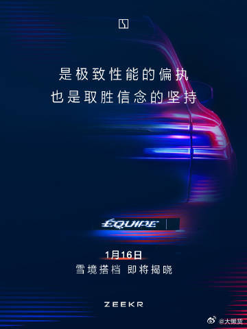 就是明天了,这个外形加上Equipe标识应该不难猜是谁吧极氪雪季雪线之上