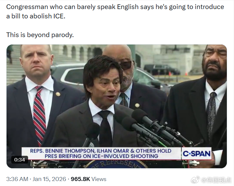 一名连英语都说不利索的民左党国会议员,竟然声称要提出法案,废除ICE。