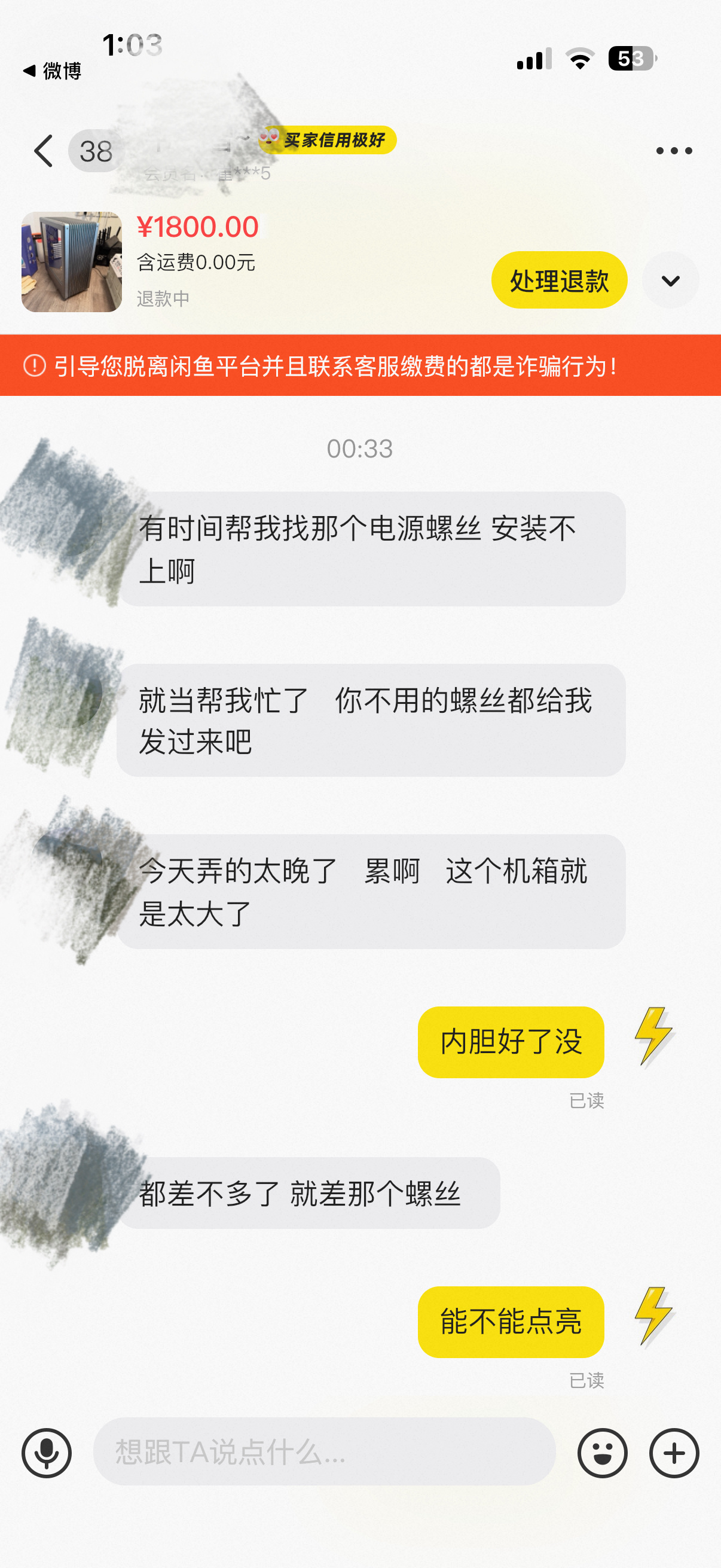 闲鱼遇到一个奇葩买家,又菜又爱玩,买我个机箱还要我指导安装,稍微晚了几分钟回复就申请退货,凌晨还来骚扰我,把我当24小时客服。