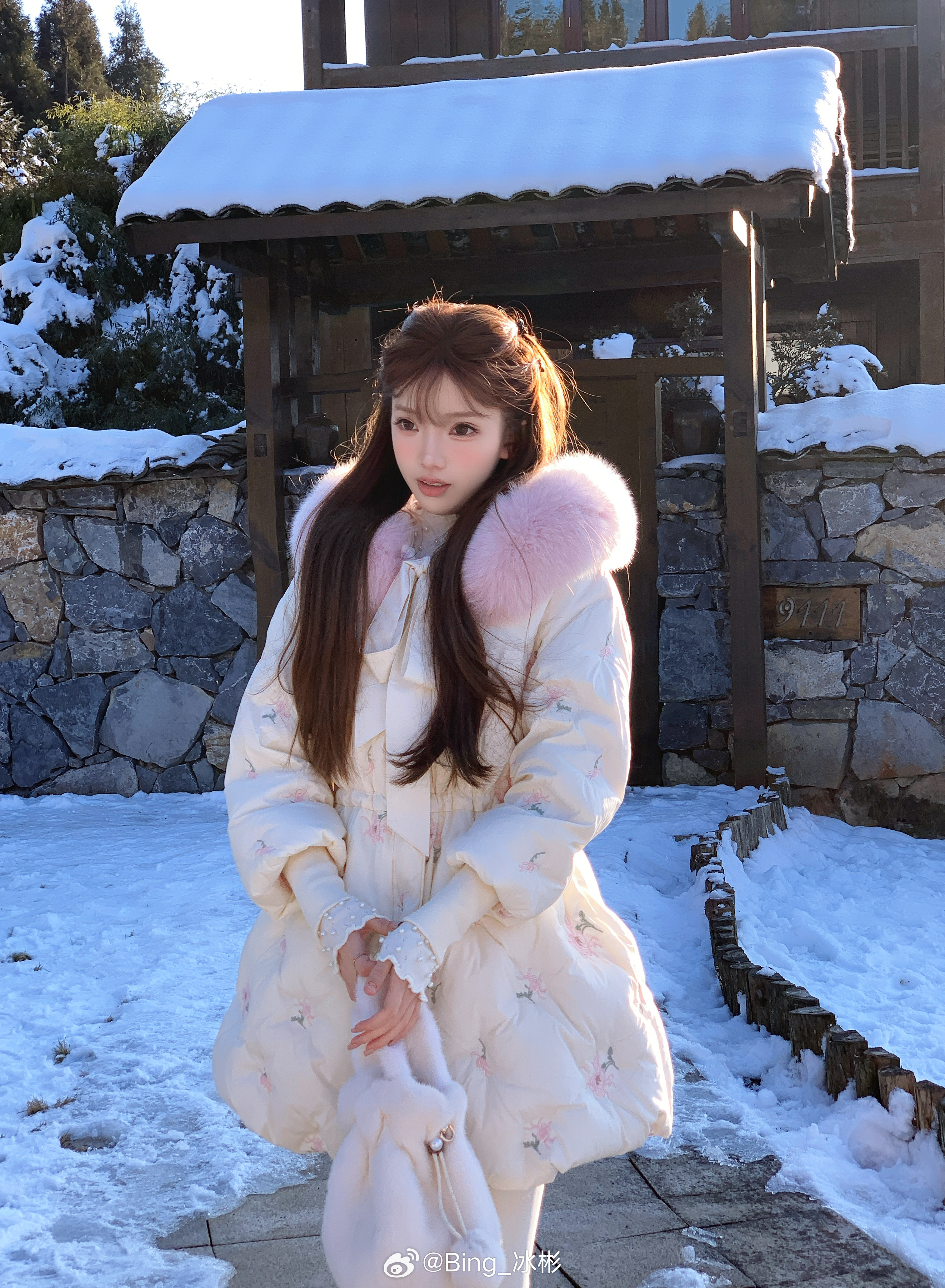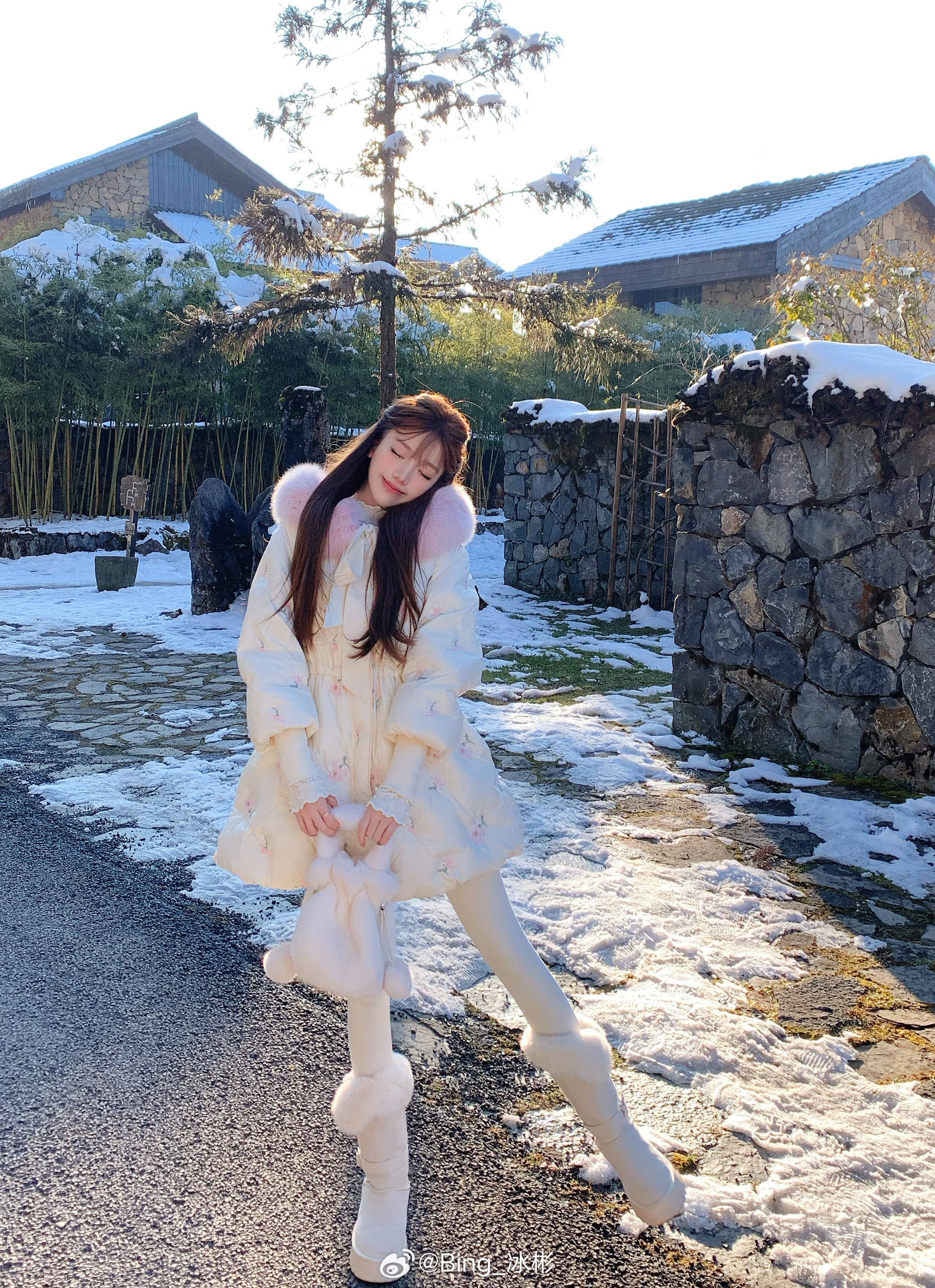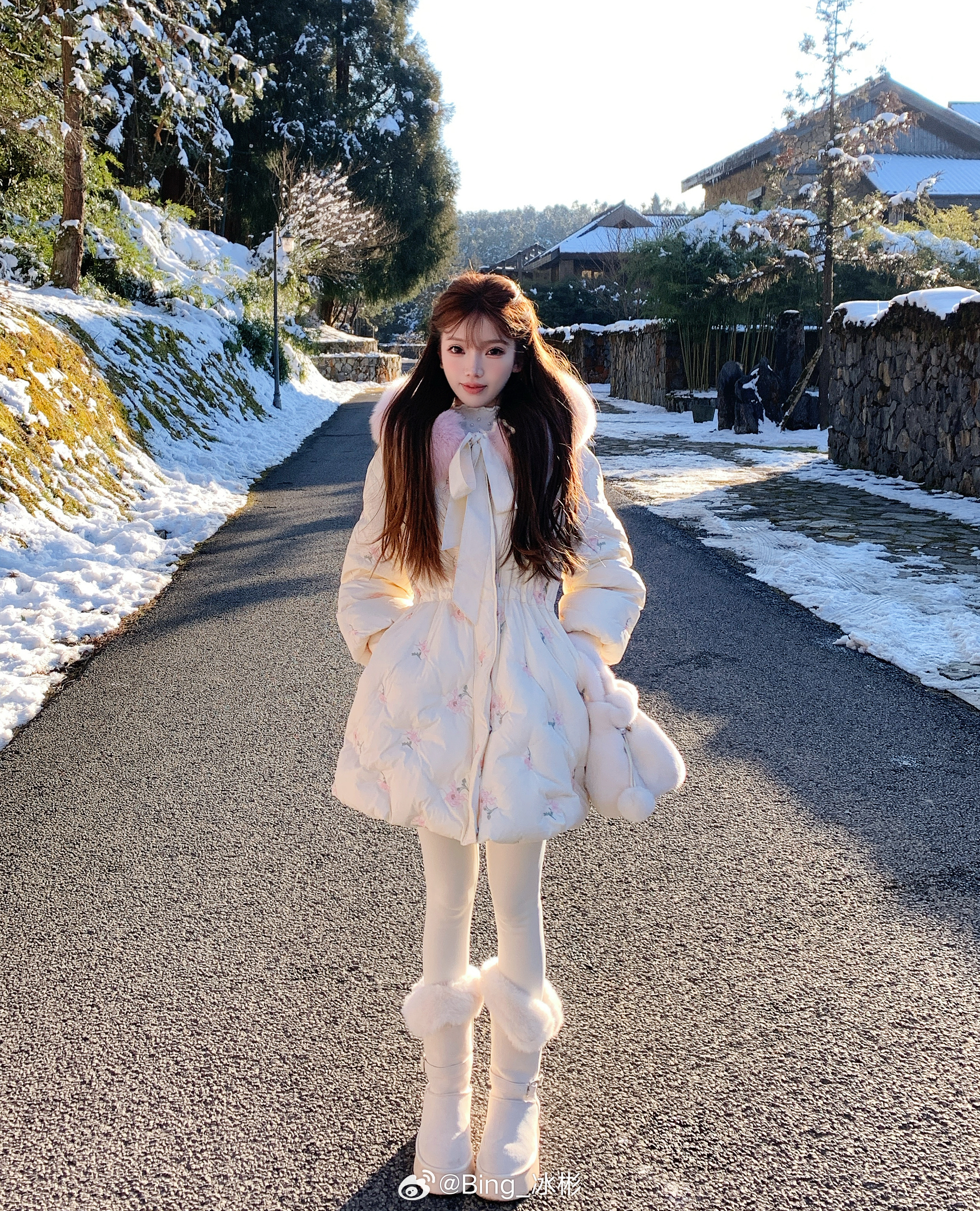 正在开这款↓草莓布丁羽绒外套 and 羽绒马甲都配有腰带哦,显腰身显腿长两种穿法