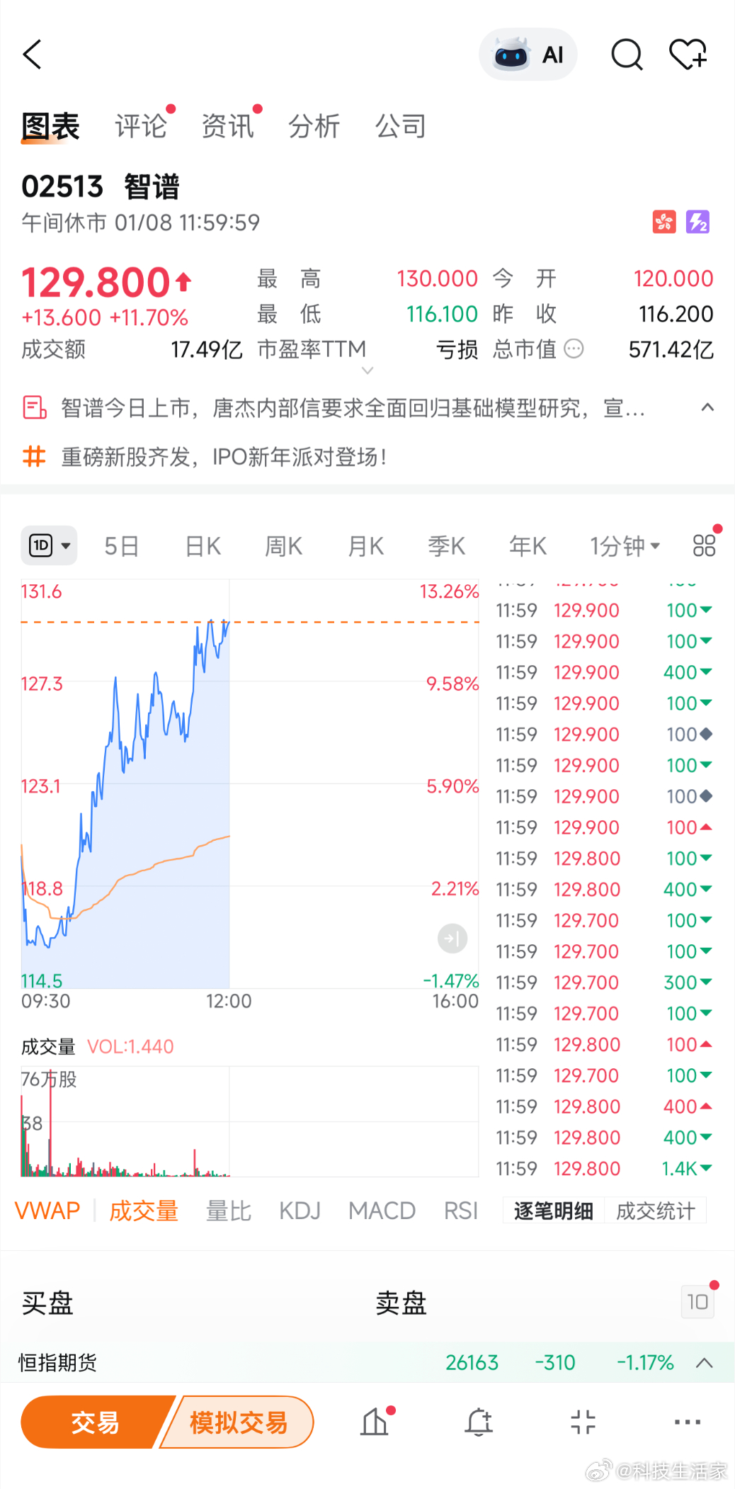 【智谱上市首日逆势走强】在今日整体偏弱的港股行情中,多数板块承压回调,智谱AI作为全球首家独立上市的大模型公司,在上市首日逆势走强,市值站上五百亿港元水平,成为市场关注的焦点AI大模型上市第一股