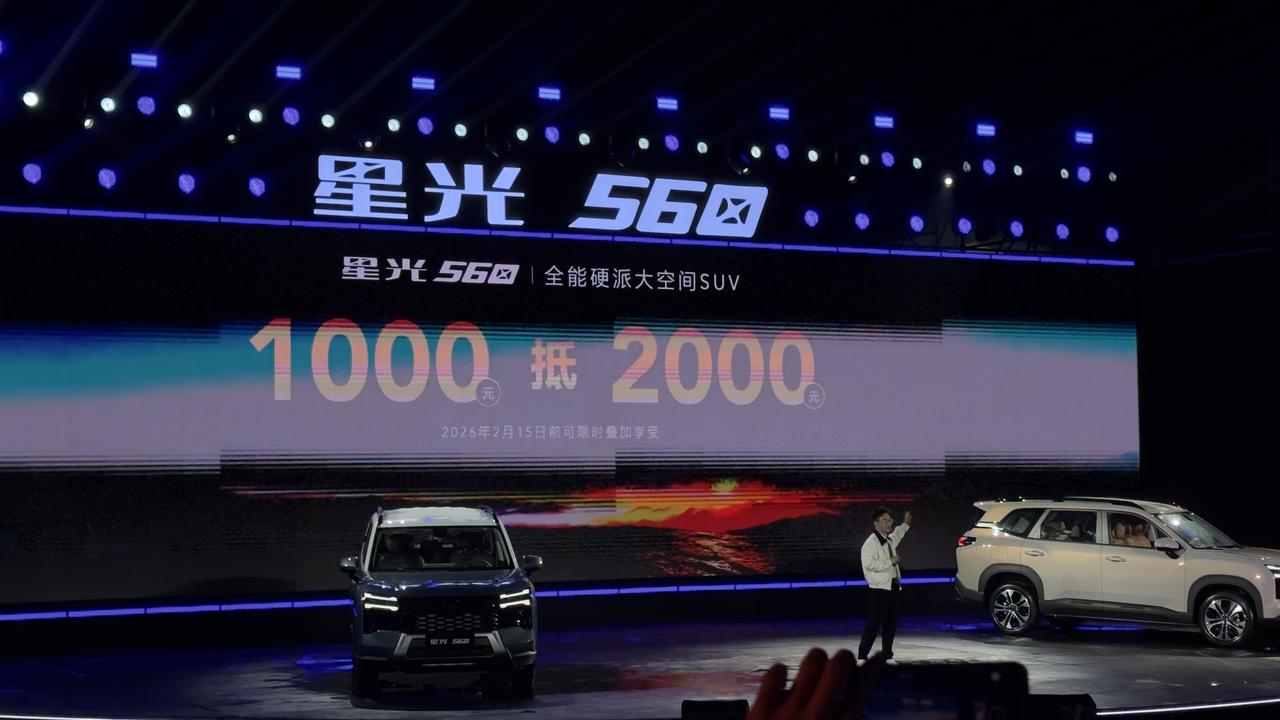 五菱「全能硬派大空间SUV」星光560正式上市,四款车型售价5.98万元-9.58万元,至2月15日下订享多重礼遇:无门槛置换补贴、赠龙膜、三电终身质保等。 星光560以硬派美学登场,全新X家族设计,星际蓝等四色可选,车顶行李架拓展功能。4745x1850x1755mm尺寸,2810mm轴距,83%得房率,1527mm宽体设计,前排180°放平,后排125°调节,32L隐藏储物槽,1945L后备厢,空间同级领先。燃油版1.5T发动机290N·m扭矩,插混版1100km续航、亏电油耗5.3L/100km,纯电版500km续航、13.1kWh/100km电耗,适配多场景。 六环高强钢笼式车身,高强钢占比74.9%,1500MPa热成型钢,神炼电池经300万销量验证,远近光双透镜大灯照射宽140°、远光距超190米,全系标配转向辅助照明,安全配置拉满。星光560以硬派设计、大空间、全场景动力、军工级安全,满足用户高质价比出行期待,为2026年生活添彩。【来自懂车帝车友圈】