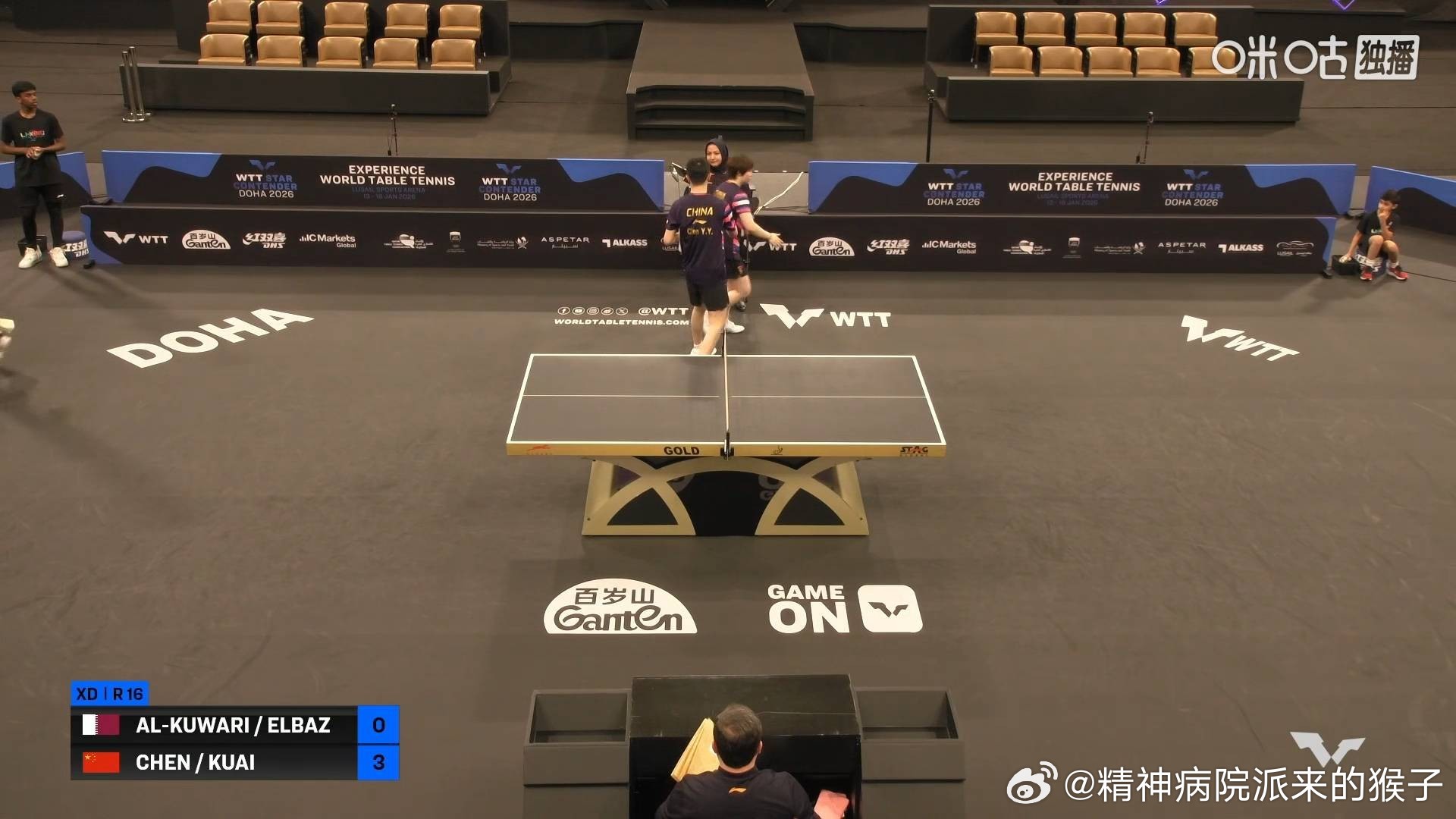 陈垣宇蒯曼3比0库瓦里埃尔巴兹(2,6,6)晋级2026WTT多哈球星挑战赛混双八强下一轮:陈垣宇蒯曼🇨🇳VS钟勋申裕斌🇰🇷