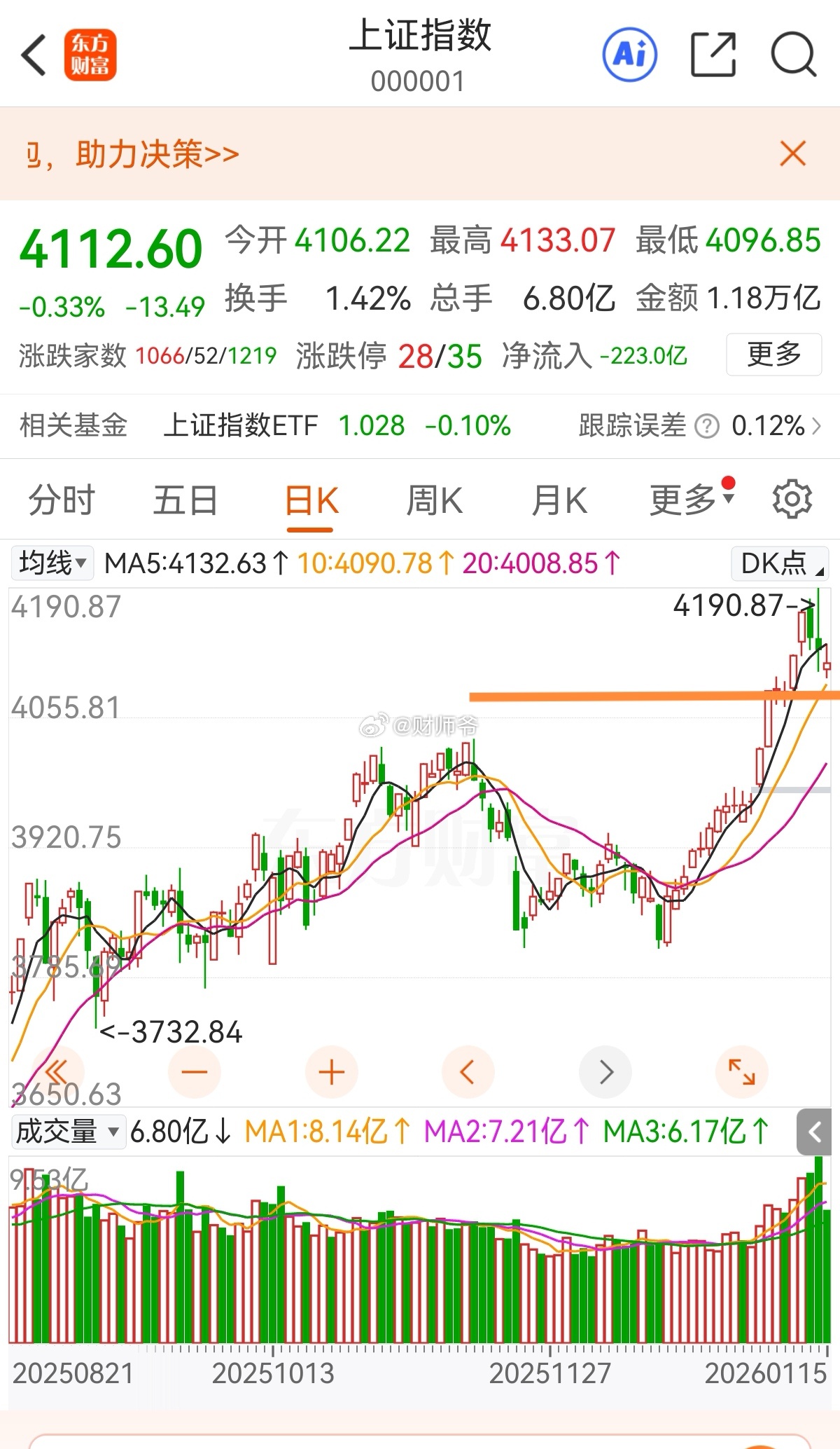 1月13日的“∨+专属”视频中财师爷讲到:“A股强势回调,将止步于该小平台”(图中橙线处),“回调属于倒车接人”。1月14日,午间公开视频中强调“管理层将会有降温措施,市场主要指数虽然创了新高,但整体依然处在回调之中。回调过后,市场依然会上升,但是上涨速率会下来”。1月15日(今日),午间公开视频中强调,“管理层只是降温,不会灭火。本次回调实属正常,不用担心,抓住科技主线。很多标的,你套牢只是暂时的。”A股a股