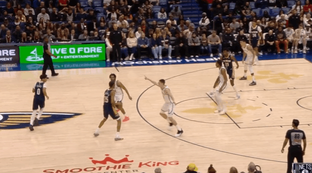 墨菲观察:有无球结合砍下34分9板5助,率队战胜篮网图1左翼持球单打曼恩,体前变向+胯下衔接前脚的挖步启动左路突破直杀篮下,面对前来协防的夏普,合球后双脚起跳从两人之间的缝隙钻过上篮得手。图2麦格文斯投篮不中,墨菲底角启动冲向篮下,在波特头顶冲抢前场篮板补篮打进。图3墨菲为锡安设置“幽灵掩护”助其点名德明,外弹至三分线外获得出手机会后接锡安传球,三分手起刀落。图4锡安持球突破直杀篮下,墨菲作为弱侧空间点举手示意自己处于空位,接锡安突分三分抬手就进。图5队友清出广阔的上线、中路操作空间为墨菲提供优质的持球单打环境。墨菲体前变向衔接胯下利用广阔的中路空间启动左路突破,行进间主动发力对抗撞飞追防的德明后立即衔接炸球横撤步后仰中投。图6墨菲推球变向后立即借助米西设置的边路挡拆向左侧行进,借掩护挂住追防的德明后,行进间前脚蹬地后立即衔接炸球撤步三分,手起刀落。图7墨菲底角拿球单打波特,转身后立即启动沿底线的突破直杀篮下,见赵四前来协防,合球的同时立即抬头看框佯装起手终结,误导回收协防的赵四后起步过掉反篮打进关键进球。NBA