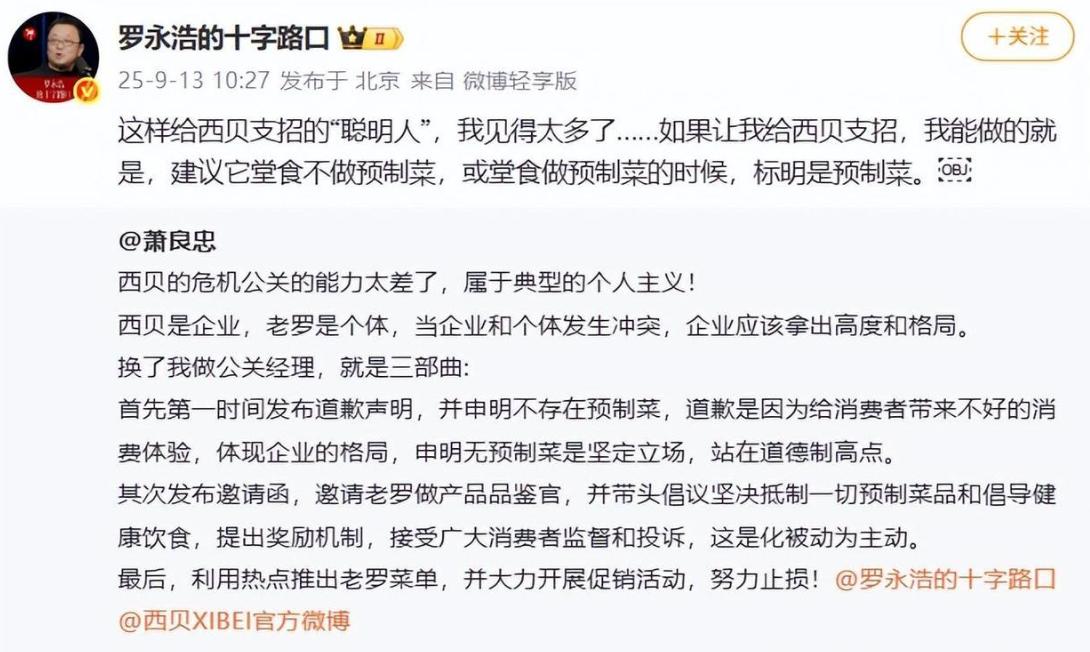 贾国龙是一个踏踏实实做了38年实业, 带领一万七千人为顾客做服务的人, 其实老老实实做事情,本不需要懂公关, 西贝,就像是贾国龙的孩子, 自己的孩子被人指指点点说三道四, 辩解几句,再正常不过了! 结果,因为不会诡辩成了2025年最惨的人。 哎,站在西贝对面那些蹭流量的人,不应该啊!