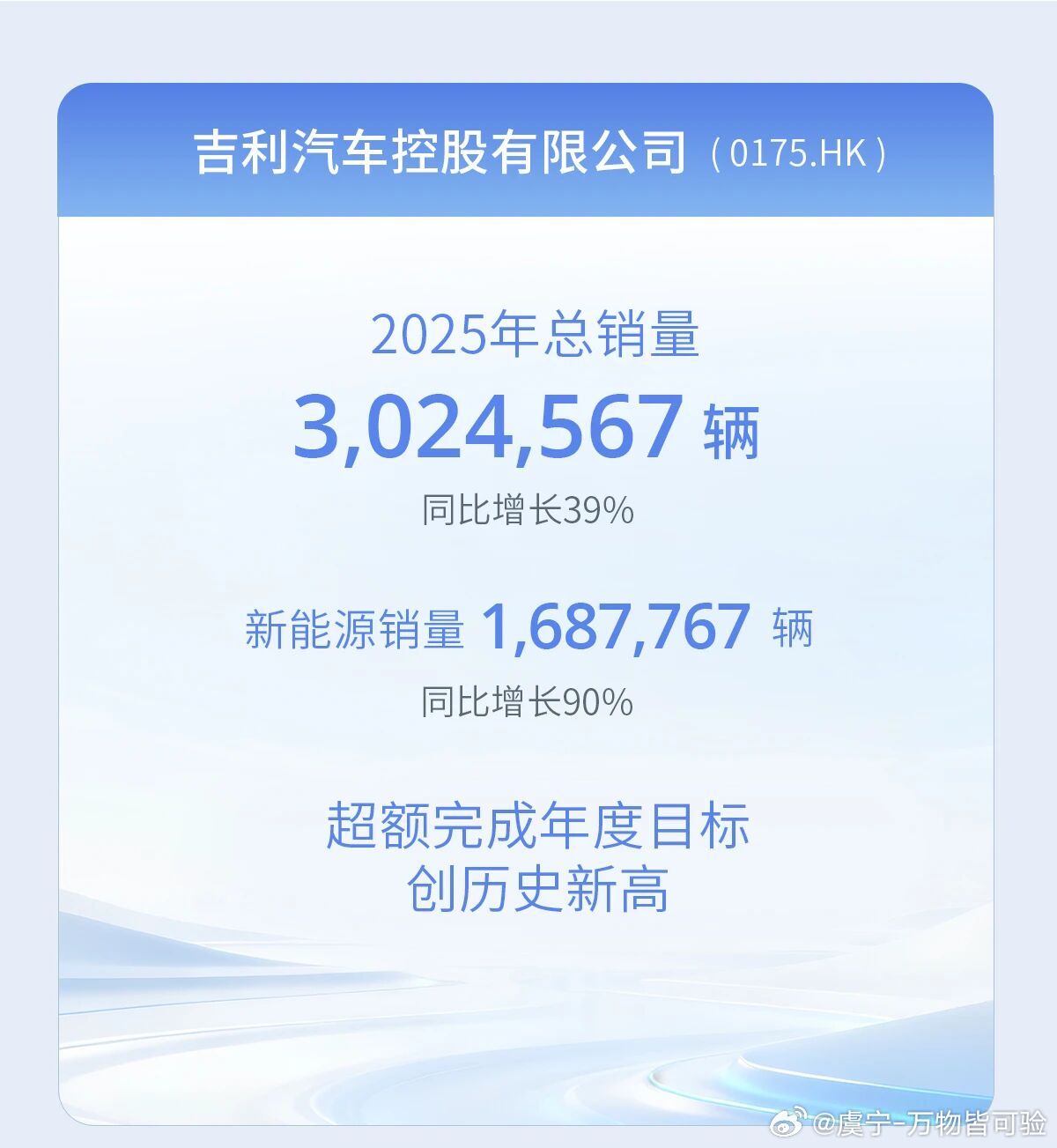 吉利控股首次破400万辆新能源接近230万辆,同比增长58%吉利2025强势破局,这太猛了!吉利大v聊车 北京
