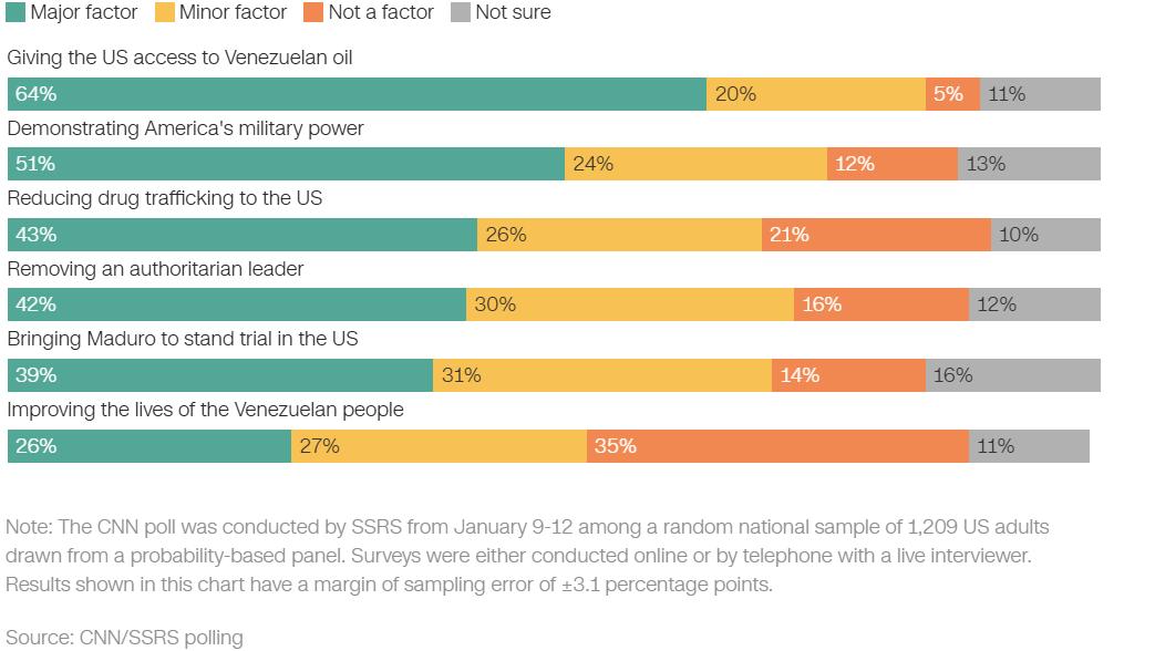民调显示,75%的美国人反对接管格陵兰 CNN进行的最新一项民调显示,高达75%的美国人反对控制格陵兰岛,这对特朗普来说,无疑是打脸的。 民调显示,支持美国控制格陵兰的人仅有25%,在共和党和支持共和党的选民中,50%的人支持,50%的人反对;在民主党和支持民主党的选民中,反对者占94%,其中80%的人强烈反对;中间选民中,80%的人表示反对。 民调还显示,选民对特朗普近期的一系列外交动作并不太认可。55%的选民表示,特朗普 正在过度使用军事力量以扩大影响,57%的选民认为特朗普的外交政策正在损害美国的国际地位。 关于委内瑞拉局势,52%的选民反对特朗普在委内瑞拉的军事行动,48%的人表示支持;58%的选民反对美国控制委内瑞拉,其中31%的人强烈反对;66%的美国人不相信美国能在一年内使委内瑞拉建立一个稳定政府;大多数美国人认为特朗普在委内瑞拉的军事行动是为了获得委内瑞拉的石油以及展示军事实力,只有少数人相信特朗普的关于禁毒的说辞。 毫无疑问,特朗普的一系列出格的举动正在进一步撕裂美国社会。