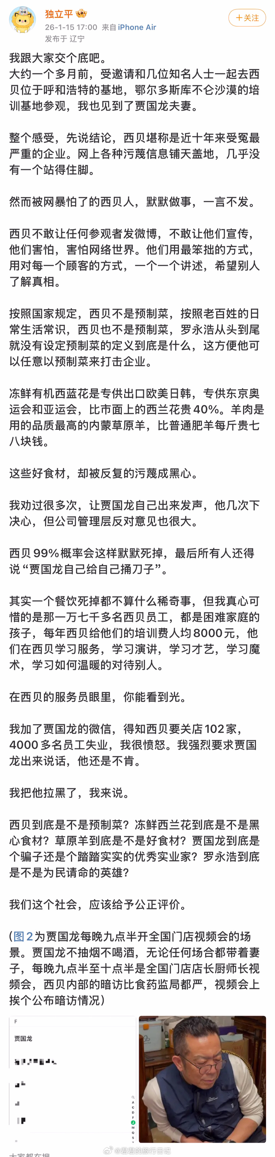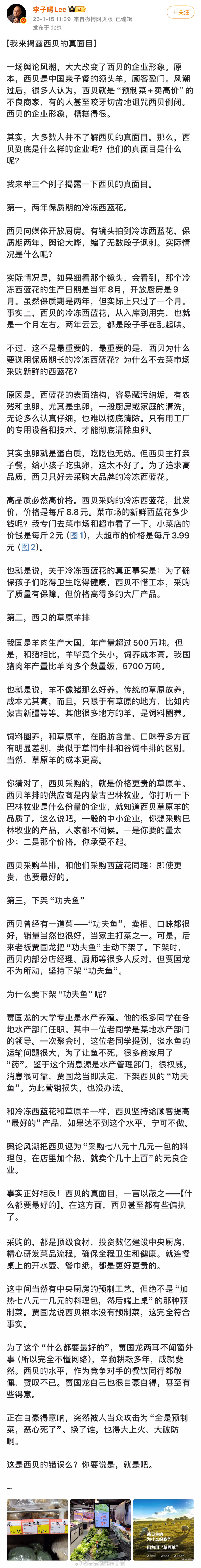多名博主发文,为西贝的闭店感到惋惜