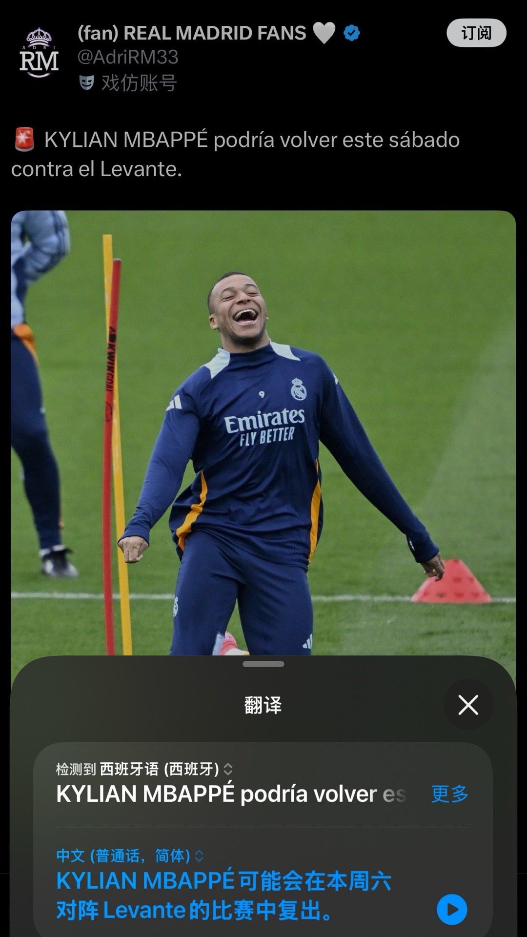 姆巴佩 IG STORY更新:祝球队好运!我 1000% 相信我们一定会胜利
