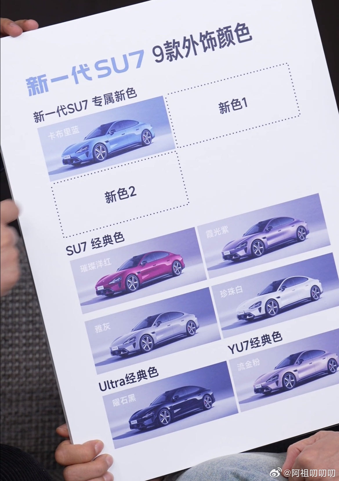 新一代su7今天的发布会干货很多,曜石黑和流金粉来了,轮毂保留了梅花、运动、米