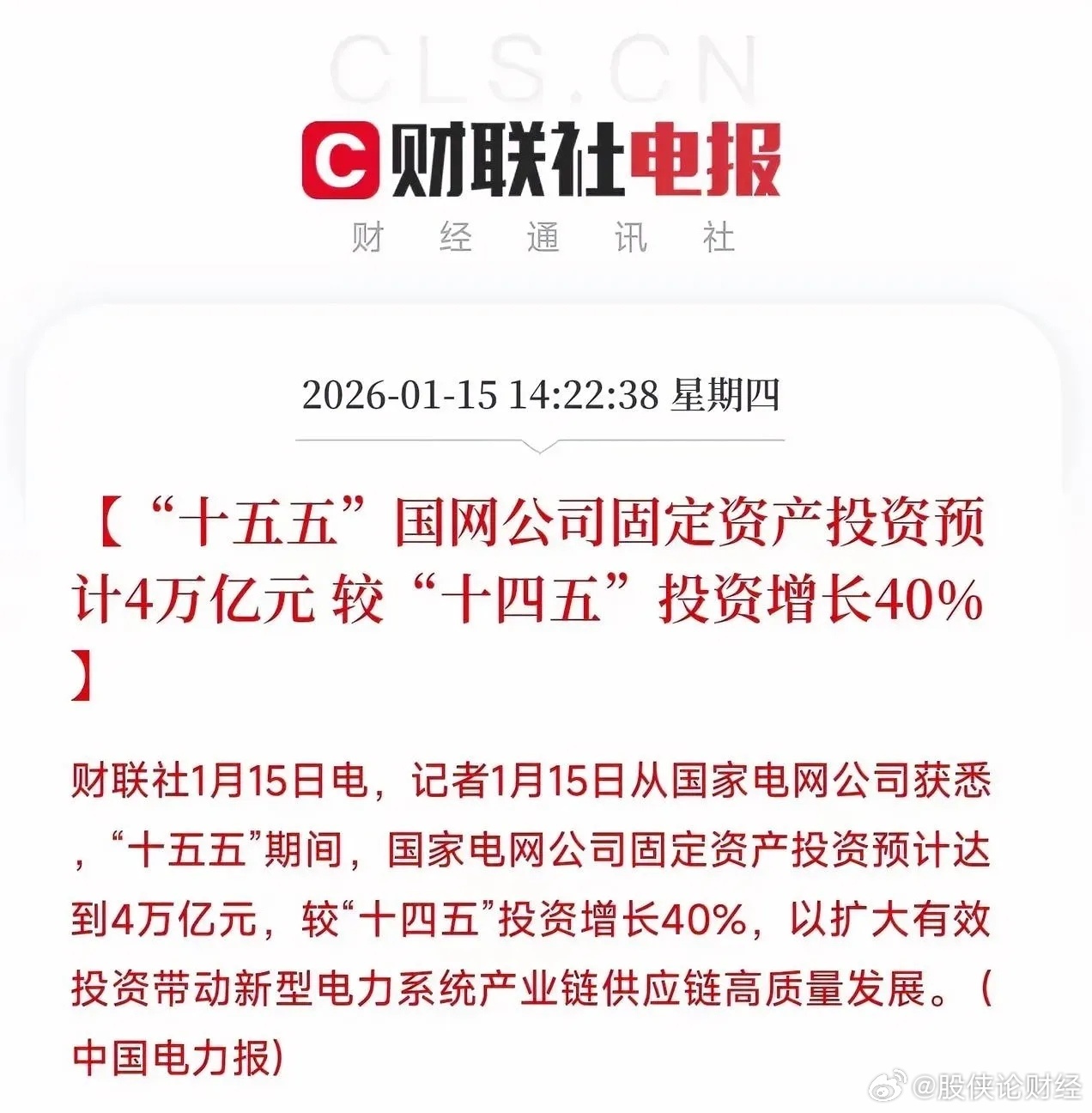 今日下午电力股上涨原因分析今日下午电力股上涨的核心驱动因素是国家电网发布的“十五五”固定资产投资利好:国家电网计划“十五五”期间固定资产投资达4万亿元,较“十四五”增长40%,投资聚焦新型电力系统建设,直接利好电网设备、特高压、配网升级等电力产业链环节,市场资金对政策带来的行业增量预期做出积极反应,推动电力股午后走高。国家电网“十五五”4万亿固投计划,是新型电力系统建设的重要政策支撑,投资增速达40%体现了电网升级建设的提速节奏。此次投资将覆盖特高压输电、配网改造、智能电网、新能源配套电网等多个领域,直接带动输变电设备、自动化控制、配网设备、变压器等产业链上下游的需求增长,为相关企业带来订单和业绩增长的确定性,也提升了电力板块整体的市场估值预期。受益股梳理1. 国电南瑞:国家电网旗下核心企业,深耕电网自动化领域,在特高压控制保护、智能调控技术与系统上优势显著,深度参与国家级电网工程,政策带来的电网升级将直接推动其订单规模增长。2. 特变电工:全球输变电设备核心供应商,特高压变压器领域市场份额居前,产品应用于多项重大输电工工程,业务覆盖输变电全产业链,将充分受益于电网投资扩容。3. 中国西电:特高压输变电设备全产业链企业,参与国内多数特高压工程建设,可提供变压器、开关等核心装备,技术与工程经验深厚,将承接电网建设的大量设备需求。4. 许继电气:在换流阀、柔性输电领域具备技术领先性,产品广泛应用于特高压直流输电工程,是电网关键设备的重要供应商,电网投资增长将直接拉动其产品销量。5. 平高电气:专注高压、特高压开关设备,在GIS领域处于行业领先地位,产品大量应用于特高压变电站,为电网安全运行提供核心支撑,将受益于特高压工程建设提速。6. 双杰电气:主营配网设备研发制造,产品适配城市配网升级、新能源接入场景,与输变电主设备形成上下游配套,配网改造投资增加将带来业绩增长空间。7. 三变科技:以中小型变压器为主营方向,产品广泛应用于配电网、工业企业及新能源项目,是配网设备体系的重要组成部分,电网配网投资扩容将利好其业务拓展。8. 金盘科技:电力设备产品远销全球,在干式变压器、模块化电源领域有技术积累,同时布局固态变压器、数据中心电源装备等新方向,将同步受益于电网升级与新兴领域需求。9. 保变电气:专注变压器等输变电设备,产品应用于特高压工程、配网改造及海外项目,与国内电网建设需求紧密相关,电网大额投资将提升其设备订单量。10. 明阳电气:电力设备出口覆盖多国,在风电配套变压器领域实现技术突破,产品与新能源发电、输配电网形成配套衔接,将受益于新能源电网配套建设。11. 思源电气:聚焦输配电及控制设备领域,在互感器、无功补偿设备等产品上技术成熟,产品广泛应用于电网建设与改造,电网投资增长将带动其营收提升。12. 四方股份:深耕电力系统自动化与继电保护领域,为智能电网建设提供核心设备与解决方案,电网智能化升级的大趋势将为其带来更多市场机会。13. 长高电新:主营高压隔离开关、断路器等设备,产品适配特高压、超高压电网工程,是电网一次设备的重要供应商,电网建设提速将直接利好其产品销售。14. 林洋能源:布局智能电表、储能及光伏电站业务,智能电表业务与电网智能化改造需求匹配,储能业务则契合新型电力系统的发展方向,双重受益于电网投资政策。15. 科陆电子:专注智能电网、储能及新能源业务,在配电自动化、用电信息采集设备上有核心技术,电网智能化与新能源配套建设将推动其业务发展。16. 国电南自:国家电网旗下企业,主营电力系统自动化设备,产品覆盖发电、输电、配电等环节,电网投资带来的设备更新与新建需求将提升其业绩弹性。17. 亨通光电:主营光纤光缆、电力电缆等产品,特高压输电工程对特种电缆需求旺盛,公司电缆产品可适配特高压建设,将受益于电网输电环节投资。18. 中天科技:布局光通信与电力传输领域,电力电缆、海缆产品技术领先,特高压与海上风电配套电网建设将为其带来持续的订单需求。19. 远东股份:专注电线电缆研发生产,产品涵盖高压、超高压电缆,广泛应用于电网建设、新能源等领域,电网投资扩容将拉动其电缆业务规模增长。20. 积成电子:主营智能电网自动化、公用事业自动化产品,在配网自动化、用电自动化领域布局深入,电网智能化改造将为其带来更多市场空间。总结国家电网“十五五”4万亿固投计划为电力产业链带来了明确的长期发展机遇,特高压、智能电网、配网设备等细分领域将直接承接政策带来的增量需求,具备核心技术、稳定市场份额的产业链企业有望在订单落地中实现业绩增长。短期来看,政策利好推动市场情绪提振电力股走势,中长期则需关注企业订单转化与业绩兑现的实际情况,以此把握板块投资的核心逻辑。股市有风险投资需谨慎