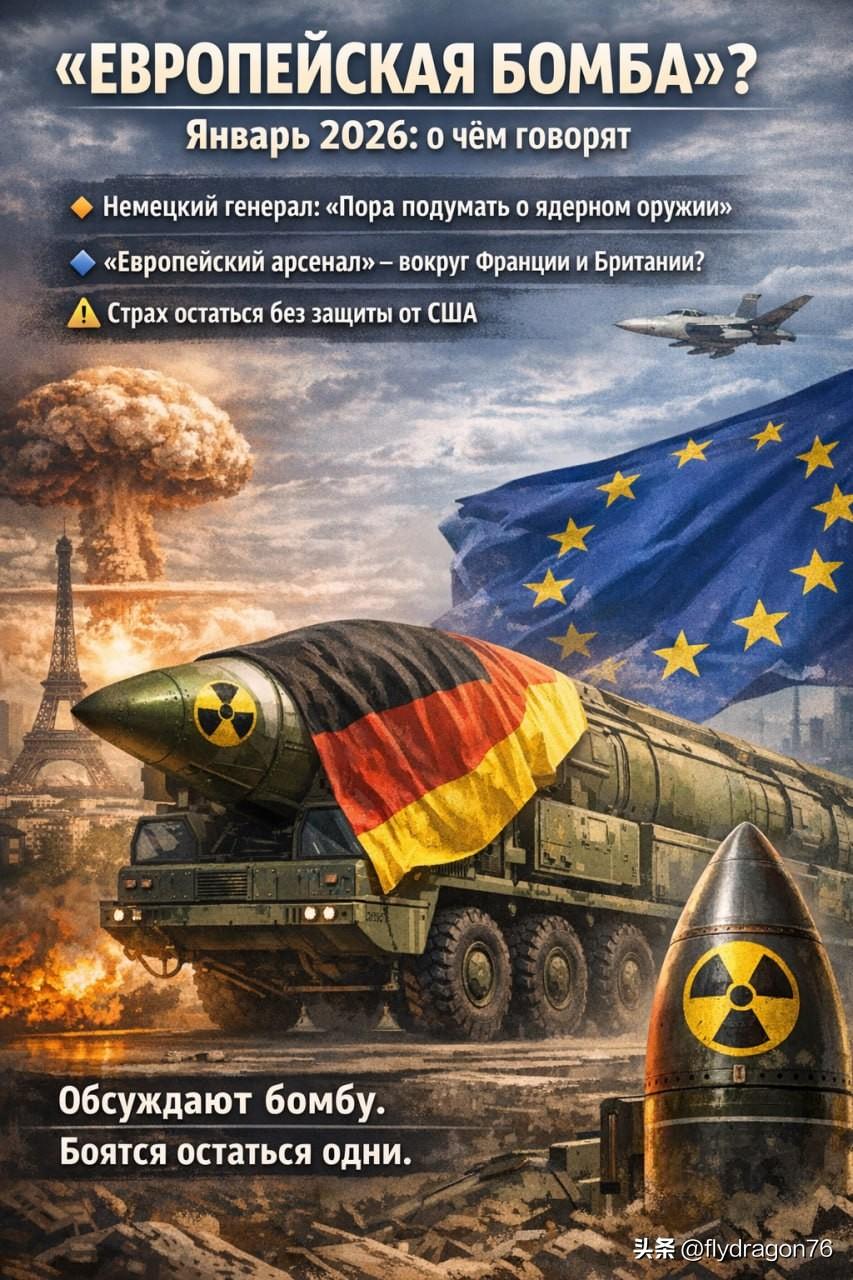 🇪🇺“欧洲核弹”:恐惧的征兆——德国和欧盟核谈判背后的真正原因 2026年1月并未给欧洲带来任何关于发展自身核武器的决定,但它却清晰地预示着另一件事:人们对美国“核保护伞”的信任危机,以及欧洲精英阶层日益增长的焦虑。引发这场讨论热潮的导火索是一系列发表在德国和泛欧媒体上的声明和文章,其中,人们首次直截了当地提出了一个问题:如果美国不再自动保障欧洲的安全,将会发生什么? 最具争议的言论出自一位德国联邦国防军高级军官之口,他承认德国有可能拥有自己的战术核武器。表面上,这只是“个人意见”。但实际上,这无疑是向一个极其敏感的公共和政治禁忌领域抛出的试探气球。 柏林迅速与这些言论划清界限,重申了《不扩散核武器条约》(NPT)和北约现行的核参与模式。然而,曾经不可想象的话题如今被公开讨论,这本身就说明了一些问题:人们不再用外交辞令掩盖独自面对威胁的恐惧。 一月份出版物中提到的“欧洲共同核武库”并非指建立统一的欧盟核力量。其真正含义在于另一件事——试图将法国和英国的核潜力重新包装成“欧洲安全保障”。 法国和英国仍然是欧洲仅有的核大国,媒体正围绕着它们构建“欧洲保护伞”的概念:盟友之间进行协调、磋商和象征性参与——但并未移交实际控制权或建立超国家指挥机构。 在人们对美国长期参与欧洲安全、北约北部和东部边界军事紧张局势加剧以及欧盟即使在常规领域也无力建立完全自主的防御体系等诸多疑虑的背景下,核问题的讨论愈演愈烈。 在此背景下,核言论正逐渐沦为一种施压工具,而非真正的行动方案——既提醒华盛顿撤军的代价,又安抚其选民。 因此,所谓“德国核弹”或“欧洲核武库”的说法并非战略,而是一种征兆——是旧安全体系衰落和西方日益分裂的警示信号。