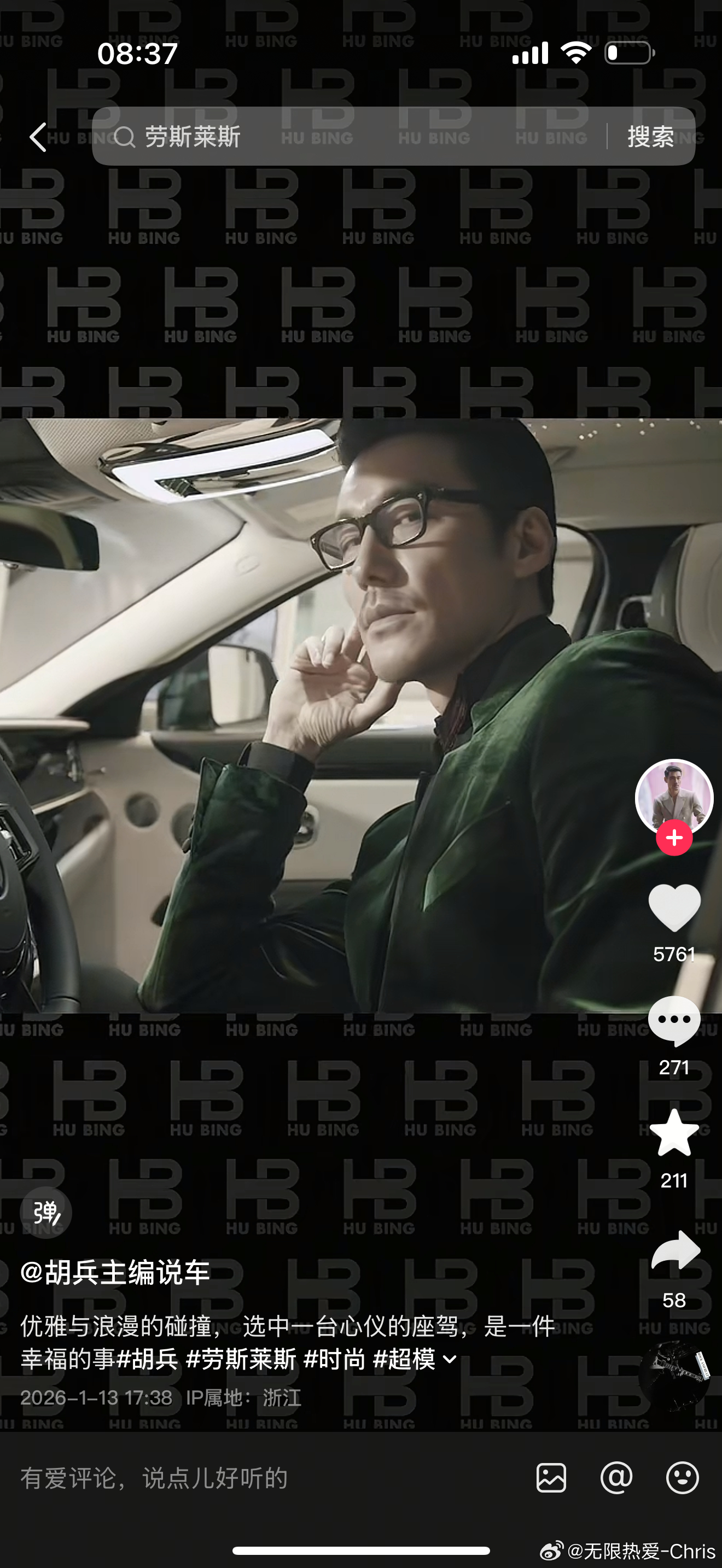 演员、模特胡兵老师也加入说车这个赛道了,汽车这个愈加拥挤的赛道现在更要卷颜值了啊「胡兵主编说车」账号内容是和男人风尚,男性魅力强关联,因为胡兵老师是杂志《LEON》中文版主编,诚然,汽车是男人独特的时尚单品,彰显男人的力量、风度和勇气,超模和超跑在一起的搭配,真是顶帅了!胡兵汽车时尚杂志汽车日常分享法拉利