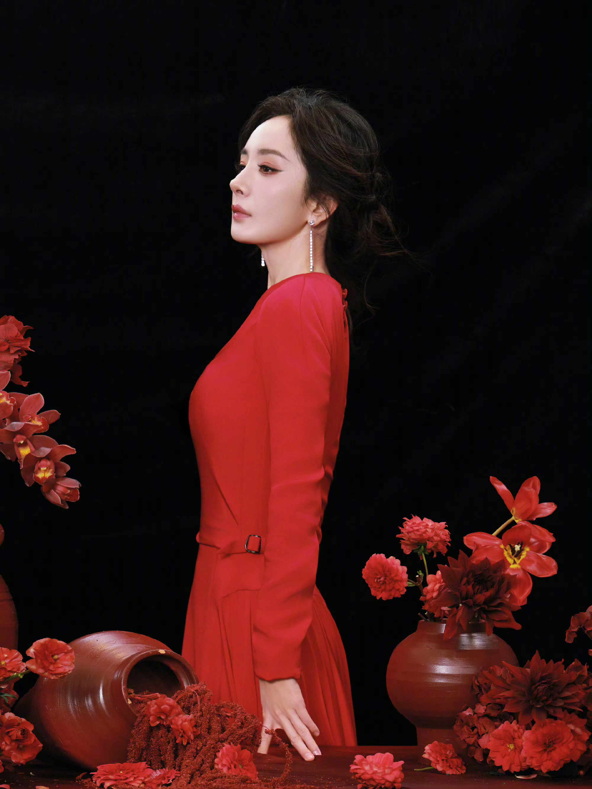 杨幂身穿法国高定品牌JulienFournié的红色长裙现身深圳雅诗兰黛“雅韵