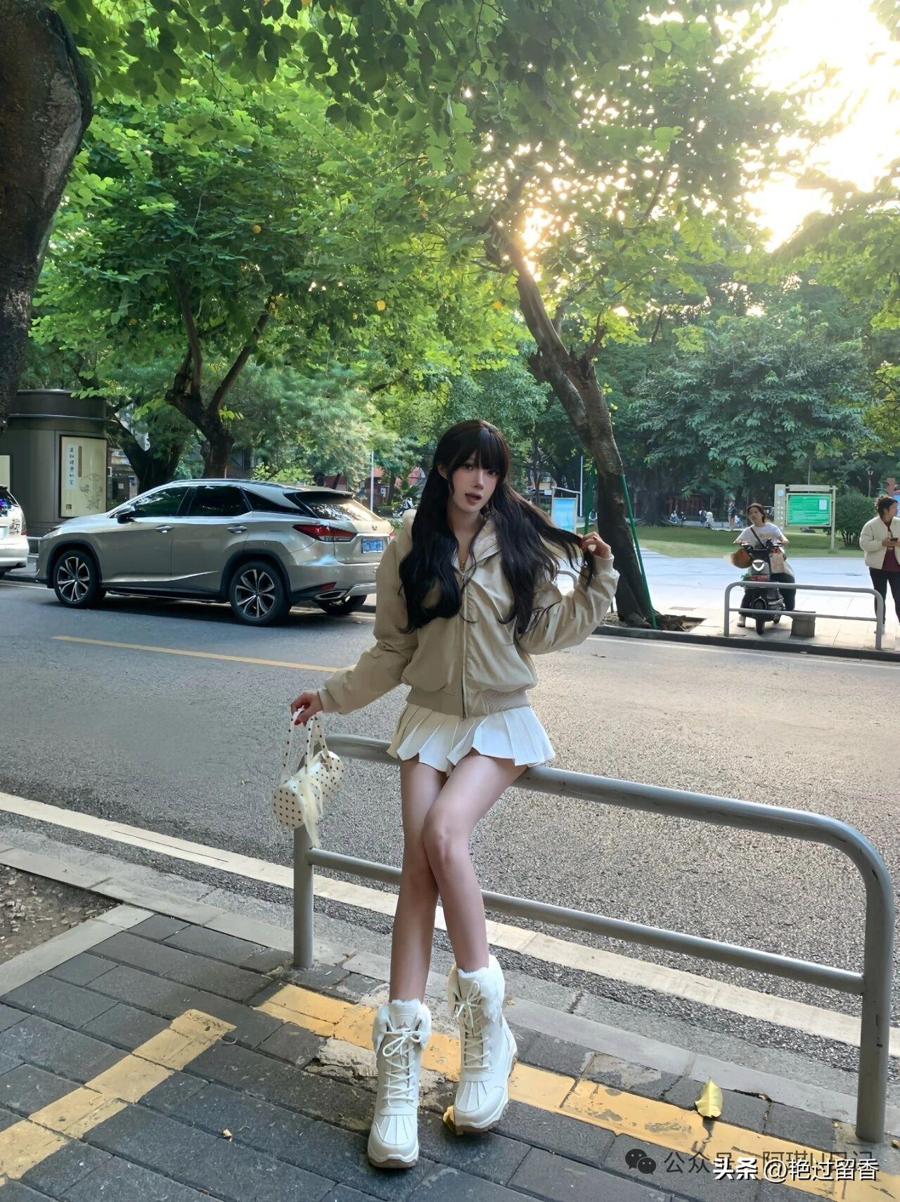 都市夜色下的时尚穿搭,黑白相间,优雅迷人。