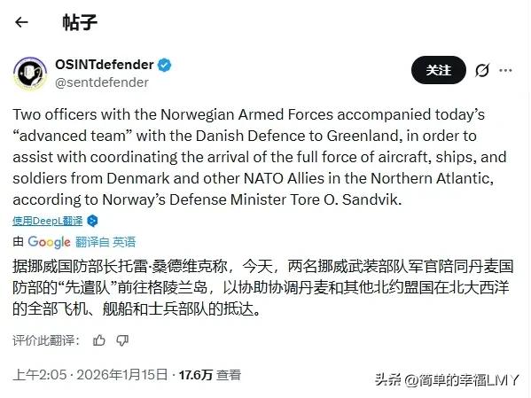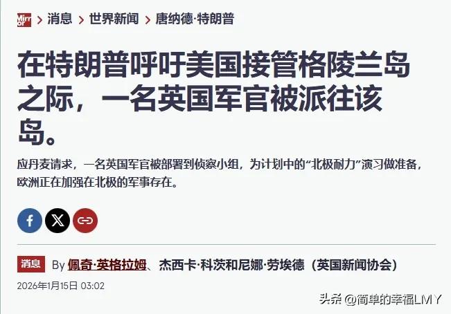 挪威出兵2人,英国派出一名军官,帮丹麦“保卫”格陵兰岛! 挪威派兵2人,英国只出1名军官。欧洲各国喊着要帮丹麦“保卫”格陵兰岛,拿出的兵力清单却让人哭笑不得。 德国先吆喝着派了13人,紧接着法国说要送15名山地战专家过去。丹麦自己是东道主,动静稍大些。 可挪威那“大军”,数来数去就俩人;英国更省事,单派一名军官加入丹麦的侦察小组。这阵容,说是去“保卫”,倒像组团去岛上观光。 前阵子欧洲对俄罗斯多横?又是军援又是制裁,一副随时要冲进乌克兰硬碰硬的架势。怎么到了格陵兰岛这儿,就蔫了? 特朗普惦记格陵兰岛不是一天两天,按欧洲之前的强硬脾气,本该摩拳擦掌才对。可如今这点兵力,连凑个像样的岗哨都费劲,之前的张牙舞爪去哪了? 明眼人都看得出来,这哪是真要动武?分明是场心照不宣的表演。派这点人,既能对外喊“看,我们欧洲多团结”,又不至于把特朗普惹毛。 毕竟美国是北约的“大哥”,真撕破脸对谁都没好处。这种“打一巴掌揉三揉”的套路,玩得倒是溜。 说穿了,欧洲是既想摆姿态,又不敢真得罪美国。格陵兰岛对丹麦是领土,对美国是战略要地,夹在中间的欧洲各国,算盘打得噼啪响。 派少了,显得自己不仗义;派多了,怕美国秋后算账。思来想去,索性来点“象征性支援”,既给了丹麦面子,又没让美国下不来台。 可这姿态摆得也太寒酸了。挪威那2人,够干啥?是去教当地人滑雪,还是帮着数数岛上的北极熊? 英国那1名军官,难不成是去当“观察员”,每天写份《格陵兰岛天气报告》交上去?说好听点是“意思意思”,说难听点就是糊弄事。 这也难怪,欧洲这些年早就没了当年的底气。经济绑在美国战车上,安全靠北约罩着,真要跟美国叫板,怕是没那个本钱。 嘴上喊着“主权不可侵犯”,行动上却软得像棉花糖。说到底,还是怕丢了美国这个靠山,自家日子不好过。 之前对俄罗斯硬气,那是有美国在背后撑腰,说白了是“狐假虎威”。如今要面对的是美国本尊,自然得换副嘴脸。 这种“看人下菜碟”的做派,哪有半分“欧洲团结”的样子?不过是各怀鬼胎,暂时凑在一起演场戏罢了。 丹麦心里恐怕也清楚,这点援兵顶不了啥用。但有总比没有强,至少能给自己壮壮胆。 就像被人欺负时,哪怕身边站着几个手无缚鸡之力的朋友,喊口号也能喊得响亮点。可真要动起手来,这些“朋友”怕是第一个躲得远远的。 说到底,国与国之间终究是靠实力说话。欧洲要是真有底气,就该拿出像样的行动,而不是搞这种“蚊子叮大象”的闹剧。 如今这场“保卫战”,不过是给国际社会添了个笑料。特朗普要是真铁了心,这点人连塞牙缝都不够。 格陵兰岛的风吹过,吹不散欧洲的尴尬。这场表演还得继续,只是看客们都瞧明白了:嘴上的硬气,终究抵不过骨子里的软弱。