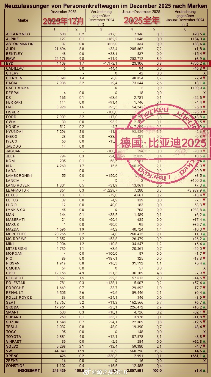 截止2025年12月底,比亚迪德国签约经销店达150家,远超预期!25年12月中旬比亚迪德国经销商会议上,比亚迪欧洲区域总监Lars Bialkowski(掌管“德国+比荷卢”)表示,德国投资人(经销商)对我们的喜爱超出了我们的预期,原定年底的120家门店目标超额完成,实际签约150家;明年(26年)我们的门店目标将从原300家提高至350家。Lars Bialkowski还表示,26家底前我们将在德国部署300个兆瓦闪充站(主要由合作伙伴完成)。