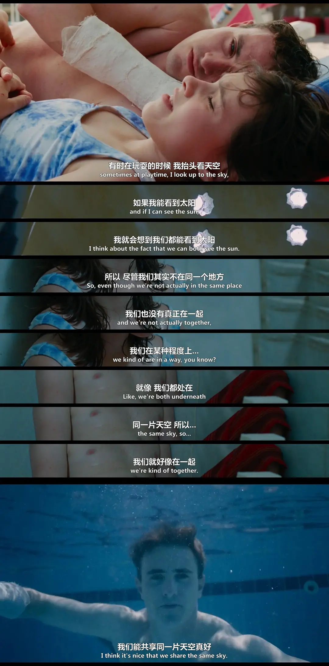 电影笔记:昨晚重看了《晒后假日》,这是一个女儿长大后对自杀抑郁症父亲的回望(私人猜测)。父亲视角、女儿11岁时的视角、女儿长大后的视角,电影至少涵盖了这三个视角。女儿回到记忆中11岁那年的土耳其之夏,想要找到快乐幻影中被忽略的哀伤碎片,那片阳光照耀的大海,埋藏着怎样的暗影。看评论区,有一种批评是认为电影的叙事很低效。我觉得恰好相反,这部电影属于作者型电影里的强叙事,导演其实非常工整、细心,试图在几乎每一个镜头里都乘放叙事,只不过这种叙事不是从人物嘴巴里讲出来的,而是通过「女儿看见了什么」、「作为单身父亲的男主在何时躲避」、「DV影像穿插,暗示成年女主回望的视角」等元素,通过这些蒙太奇、色彩、构图,来代替解释。譬如电影第9分钟,保罗·麦斯卡饰演的单身父亲在暗绿色的夜里左右晃动。他身上的衣服像极了囚衣,导演夏洛特·威尔斯特意选择了偏绿的色调,影片的沉郁、悲哀感在开场时就已经埋下伏笔。这个镜头足足持续了1分钟左右,它代表了男主的囚徒困境。譬如电影中段有一段戏,镜头先给到小女孩的眼睛,再去拍海滩青春恋人抹身体乳、肢体亲密的行为。以及一个水下镜头,女孩看到了一对恋人身体在水下的亲密。女孩并未说什么,但镜头已经不言自明——这是女孩通过观察外界而加深对于自我身体、性别、性意识理解的过程。这种理解亦包括性取向——女儿在那个夏天看到了两个男人的亲吻。导演之后用镜头语言暗示,女儿长大后也成为一名酷儿。整部电影都萦绕着酷儿的感觉,有人猜测男主也是,但只能说是一种可能性,因为电影对此处理地很模糊。男主的困境,更像是一名抑郁症患者的处境。影片对男主的抑郁症呈现地则比较具体。当他在那个情境时,他独自关在房间,消化那下坠、失速、接近死亡的痛苦。这与他在和女儿相处时竭力保持的「无事」状态截然不同。躲在房间里时,他会独自哭泣。和女儿相处时,有那么一瞬间,当他站在高处,他可以往前一步就结束自己的生命,但看到女儿,他选择继续珍视一起看海的时刻。男主说:“希望我们有一个愉快的假期。”而在DV影像暗示的成年女主视角看来,那蔚蓝色的大海飘洒着快乐也写满了悲伤。只是,那似乎是即便提前知晓也不见得能阻止的悲哀。而她所能做的就是趁还能相见时陪伴,告诉他这黑夜里你不是孤单一人。电影有多次黑色画面与人物面庞的快速切换。前两次出现时,人脸都是偏暗色调与灰白色调的,人物是把自己关起来的状态。唯有最接近片尾的一次,在一组高频率切换的暗色调镜头后,女儿与父亲的拥抱以彩色镜头出现。此时,彩色的父亲,在夜晚尽情舞蹈。暗色、灰白色的父亲,仿佛溺水之人。父亲在这两种状态中切换。而女儿一直以彩色在场。她想拥抱。她能拥抱的只剩下记忆。