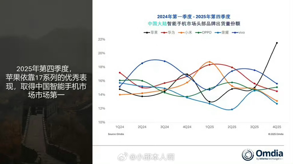 华为真的回来了! 2025年,它重新拿回了中国手机销量第一的宝座——上一次还是五年前的事。今天(1月15日)有机构(Omdia)公布了数据:去年全国一共卖了约 2.82亿部手机,比前年稍微少了一点点。但最让人意外的是排名:● 华为卖了 4680万台,占17%,排第一● vivo就差一点点,4600万台,第二● 苹果靠年底iPhone 17猛冲,卖了4590万台,勉强挤进前三● 小米和OPPO跟在后面,分别是第四、第五。关键就一点:自家芯片又能用了!麒麟5G回来了,新机性能强,价格还比以前更亲民。鸿蒙系统也越用越顺,手机、平板、手表一碰就连,特别方便。中端机Nova也稳,普通人换机不犯难。最让人意外的是,在四五千块以上的高端机里,华为卖得比苹果还多——以前大家觉得“贵的就是好”,默认买iPhone,现在不少人直接选华为了。