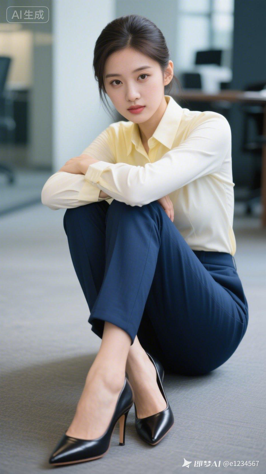 我20岁,是自带成熟风情的绝色白领,低盘发利落雅致,浅黄白紧身衬衣贴肤,藏蓝修身西裤勾勒线条,胎牛皮尖头高跟鞋加持,双手抱膝静坐,这个姿式美吗?
