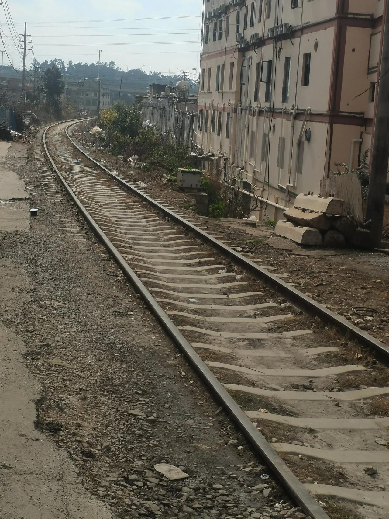 在官渡区大板桥长水机场附近的这个村子。铁路在村子中间。我觉得这个应该是先有铁路再有村民们的楼房吧!