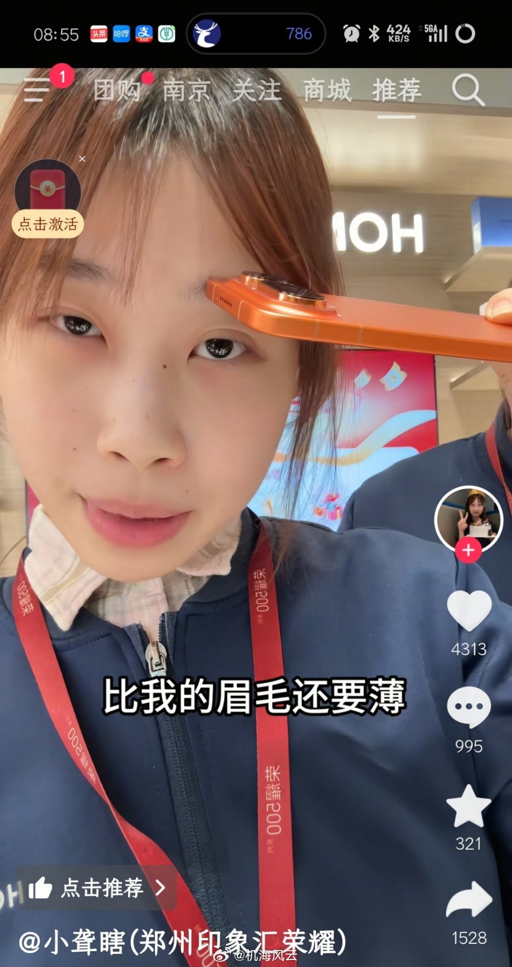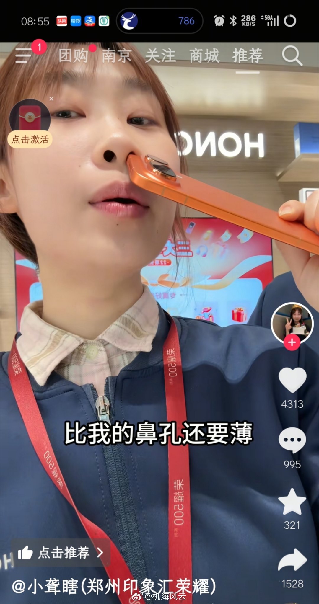 哈哈哈,又刷到郑州荣耀这妹纸了,为了推销新品,好拼啊!建议老板给她发奖金,建议华为小米OV门店店员也看看她的视频