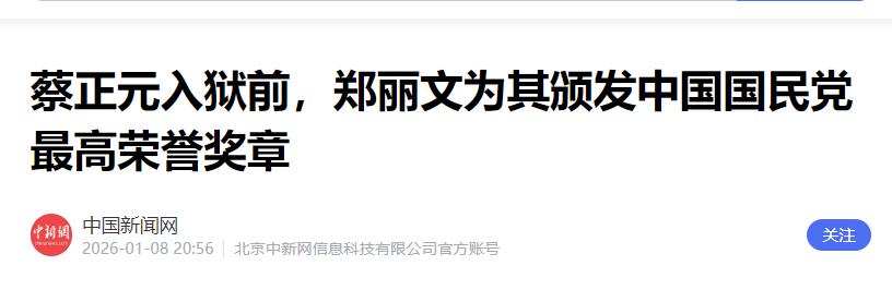 前几天还在法庭上被重判的蔡正元,转眼间形势就变了调。那个当初给他戴电子脚镣、恨不得把他往牢里送的检察官陈舒怡,现在自己倒成了被点名追责的对象。 2025年底,“三中案”二审宣判,蔡正元被判三年半,还要吐出超过两亿新台币的款项。 这判决最让人看不懂的地方是,同案被告,包括前台湾地区领导人马英九在内的其他五个人,全都安然无事。蔡正元成了这起大案里唯一的输家。 他后来对外透露,检方曾私下找过他,暗示只要他愿意供出马英九,就能换自己全身而退,但他没答应。 这案子一路走来,争议就没断过。早在2014年,台湾的特侦组就已经调查过,结论是“查无不法”,案子早就签结了。 但民进党执政后,这件旧案又被重新挖了出来。蔡正元本人又是出了名的统派,平时没少批评民进党当局,所以很多人都觉得,这判决背后恐怕没那么单纯。 判决墨迹未干,北京就出手了,而且快得惊人。2026年1月7日,大陆国台办直接点名检察官陈舒怡,给她贴上了“台独打手帮凶”的标签,宣布对她进行终身追责。 制裁内容很具体,她和她的家人不准踏足大陆和港澳,跟她家有关的公司也别想在大陆做生意。国台办甚至还公布了一个举报邮箱,号召大家提供她的“违法犯罪线索”。 北京这次直接对一位台湾司法官采取行动,可以说是史无前例。这不只为了蔡正元,更像是在回应陈舒怡经手的一连串案子。 除了“三中案”,她办的好几起“共谍案”都充满争议,被告很多是退役将领和推动两岸交流的人士。 比如已经八十一岁的退役中将高安国,就被她起诉,最后重判七年半,宣判前人已经被关了快一年。 检方给高安国定的罪名,是说他用自己的退休金资助公开的反“独”促统活动,这笔钱被认定是“危害台湾安全”。 一个人用自己的合法收入表达政治立场,竟然能变成一种罪,这种操作让很多人无法接受。 日本一位名叫中山泰秀的政治人物就曾告诉蔡正元,民进党当局有一份“整肃名单”,蔡正元的名字就在上面。 制裁陈舒怡,可以说是北京对台法律战的一次升级。自从2024年公布“惩治台独22条”后,大陆就一直在尝试建立一套真正能落地的追责办法。 这次行动,把法律的威慑力直接投射到了个人身上。过去那种“你在台湾办案,大陆管不着”的默契,正在被单方面打破。 面对民进党的司法出击,国民党也没闲着。党主席郑丽文亲自给蔡正元颁发了一枚一等勋章,把他塑造成一个不向强权低头的代表人物。 这既是力挺自己人,也是在公开回击民进党当局的司法操作,想把“司法正义”这个话题的主导权抢回来。 其实,蔡正元和陈舒怡体现了当前两岸关系下的个人处境。赖清德当局不断加码,限制退役军官去大陆交流。 而北京则推出各种措施,方便台湾民众在大陆生活。官方的对抗越来越激烈,民间的交流却从未停止。陈舒怡或许只是一个开始,谁是罪人,谁是英雄,定义的权力可能早已不在法官手上了。 信息来源:《蔡正元入狱前,郑丽文为其颁发中国国民党最高荣誉奖章》,中国新闻网,2026年1月8日。