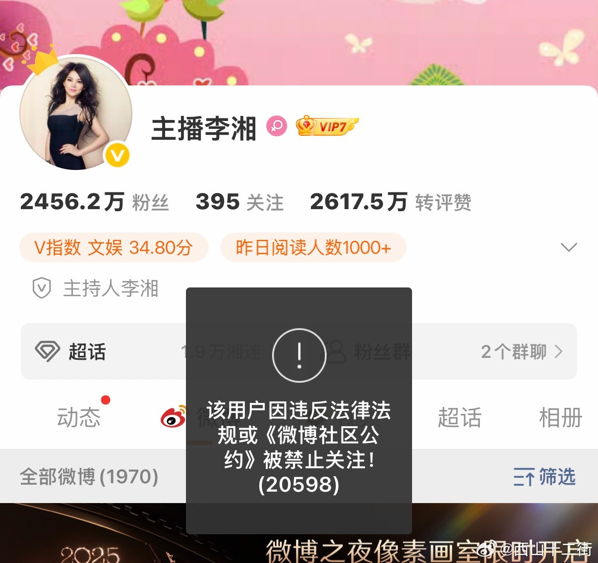 李湘全平台账号被禁止关注李湘全平台被禁止关注了