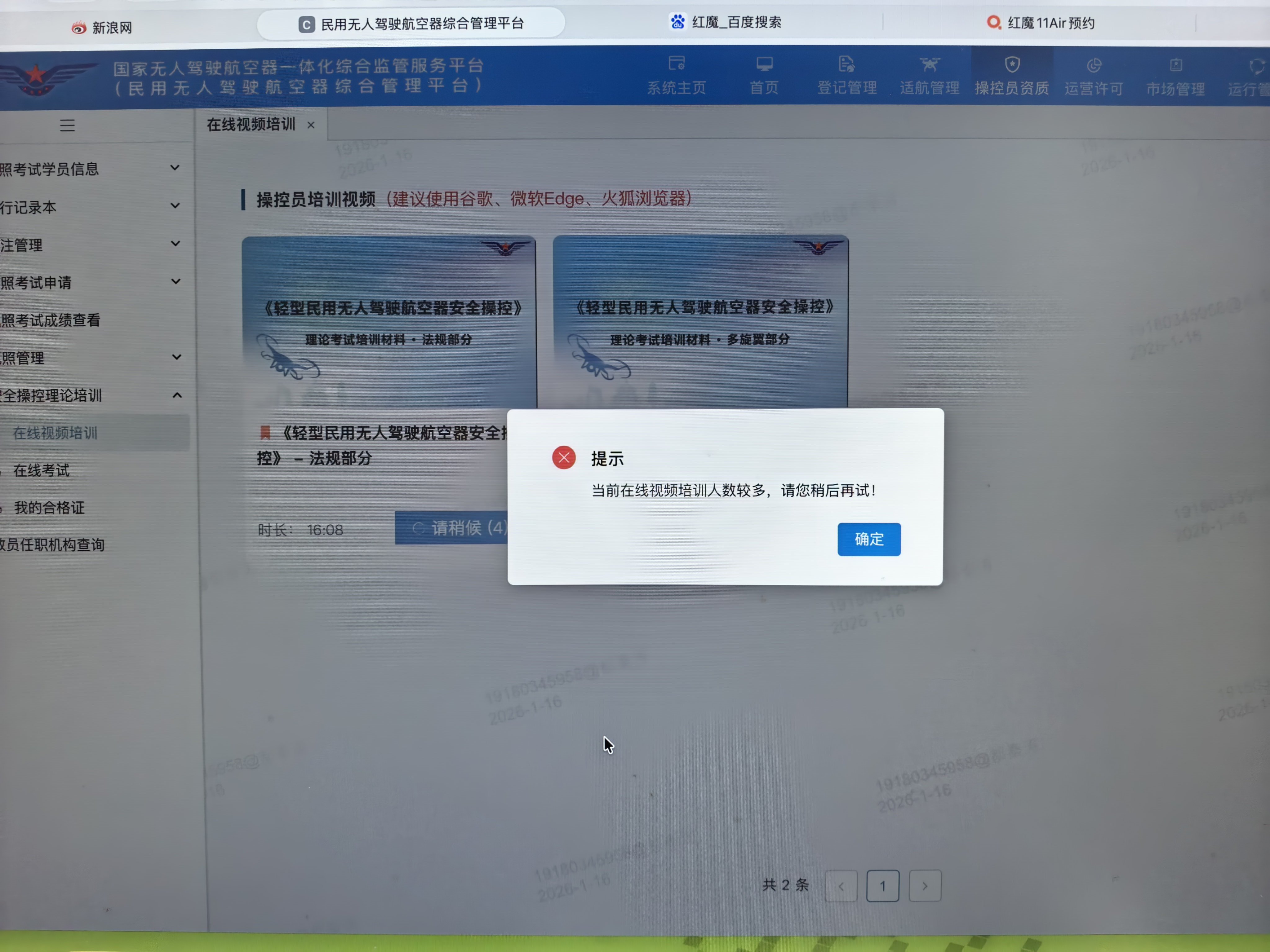 无人机考证这个网站每天点进去都是满员,真垃圾啊,草台班子!