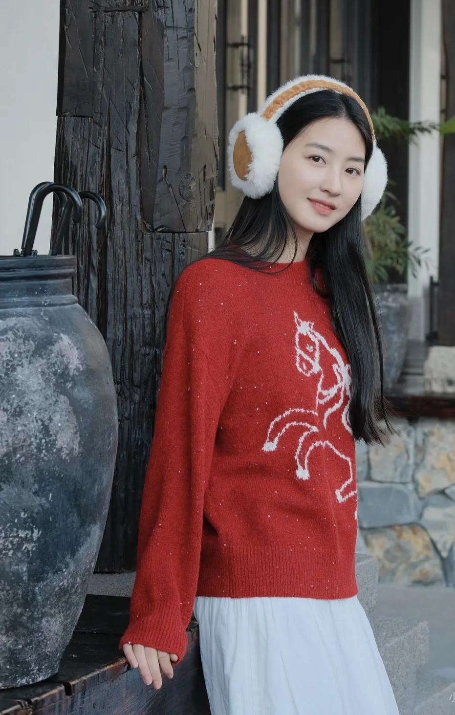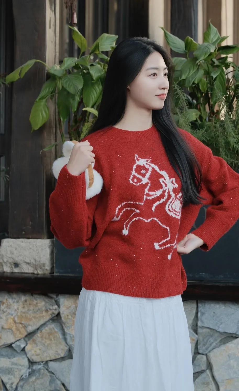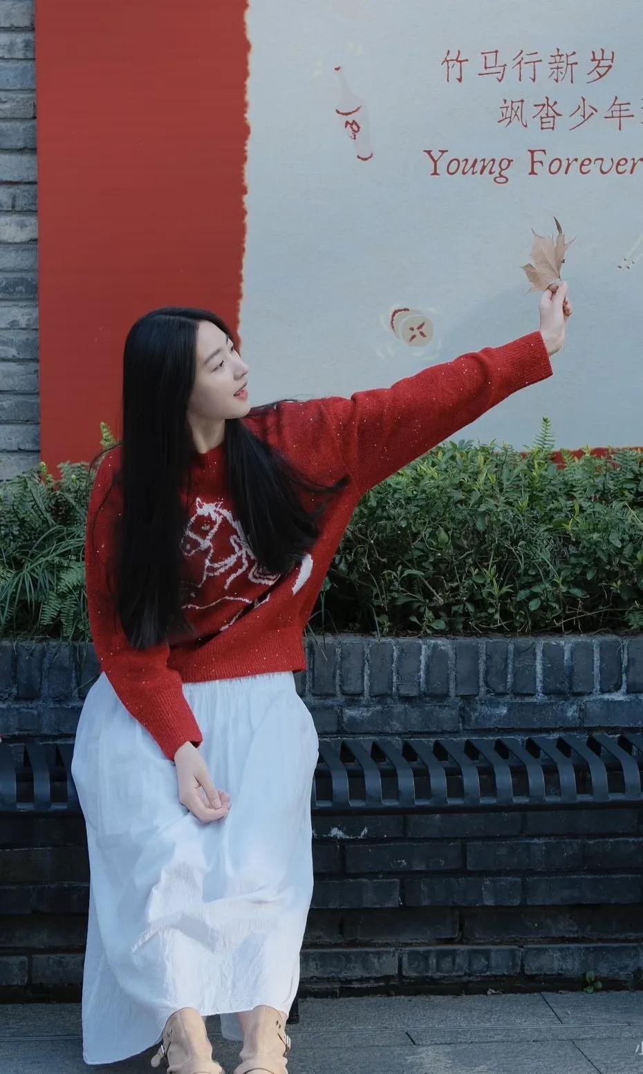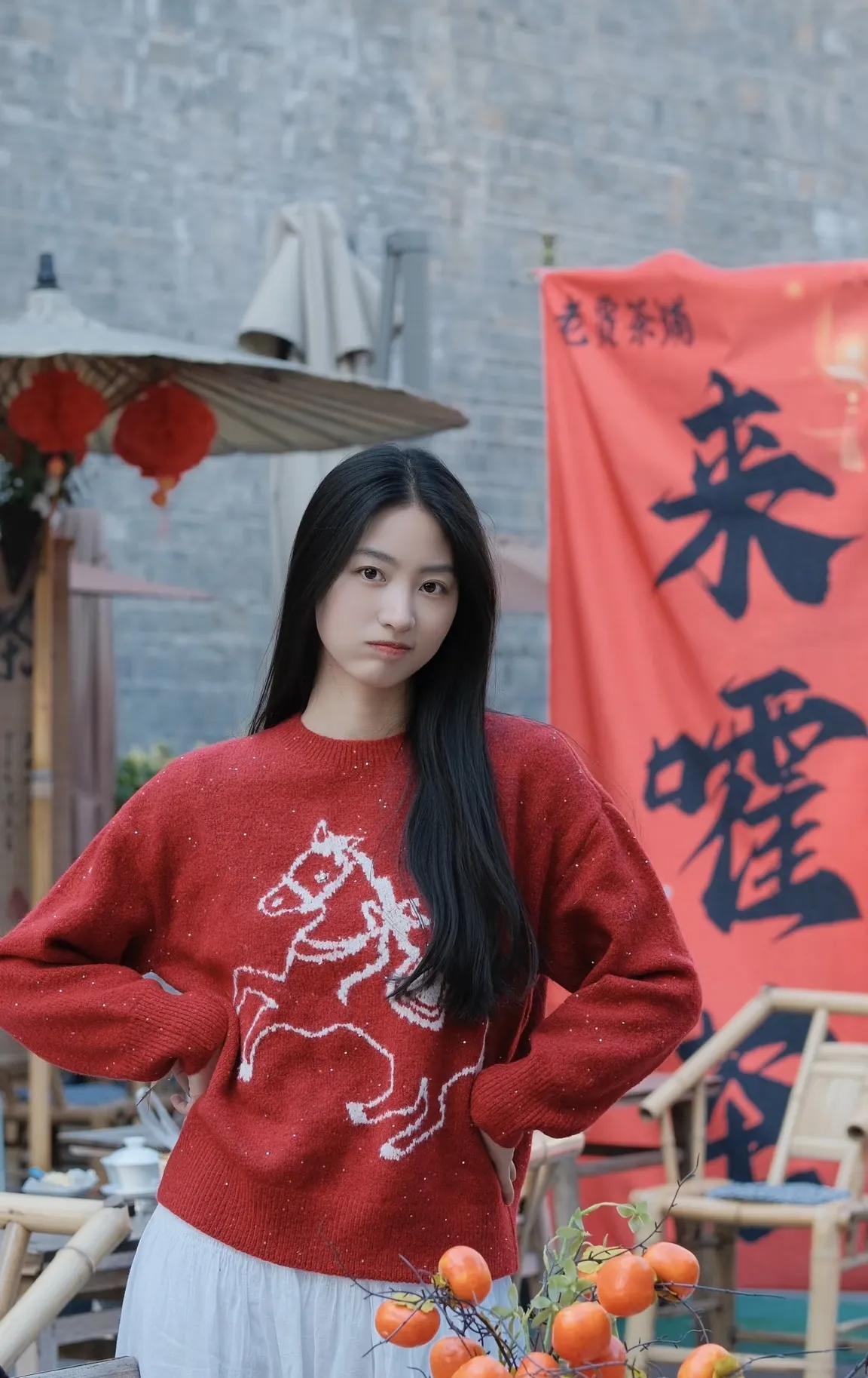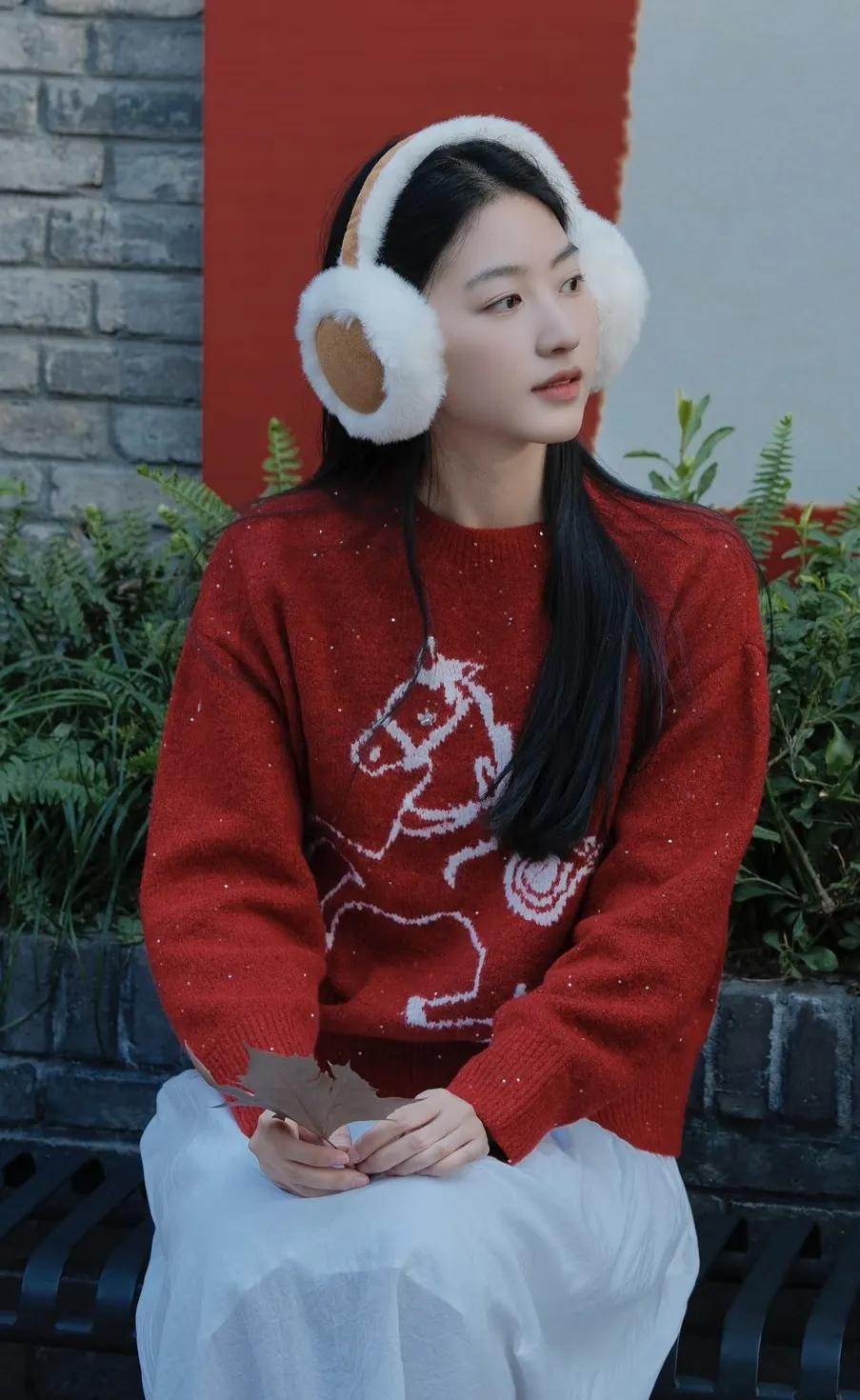 温柔气质,自然美态,绿色毛衣,清新自然。