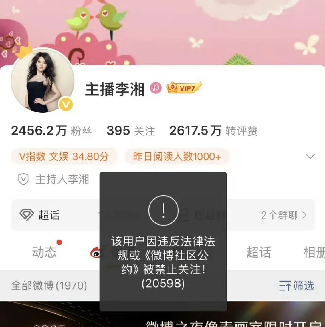 李湘全平台账号被禁止关注李湘全平台账号被禁止关注