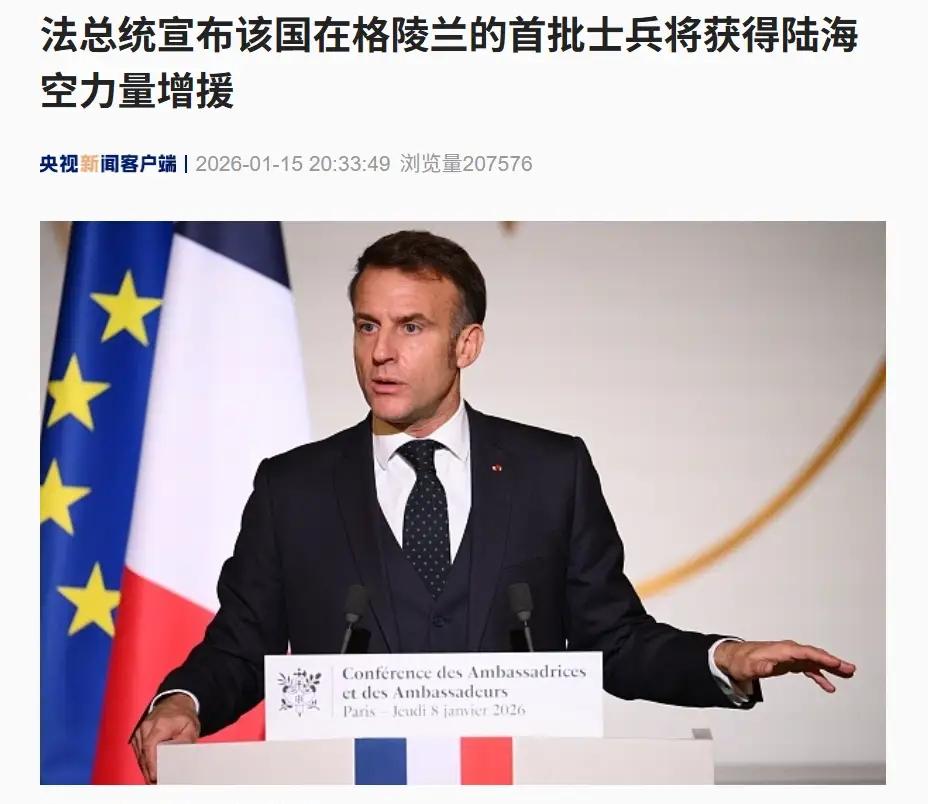 我在努力寻找“万”或“千”,甚至“百”字,可惜了没找到。欧洲多国向格陵兰岛派遣驻军,法国15人德国13人荷兰1人;法国总统马克龙称首批法国士兵将在未来几天内获得“陆、海、空力量增援”。就这个人数踢一场足球赛都够悬,没有人捡球。欧盟各国既不想反抗老美,又不想丢了面子,只好象征意义的派几个个人去。川普再上上强度,格陵兰就到手了。