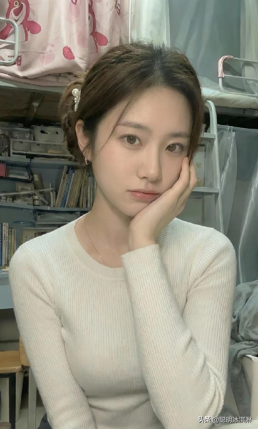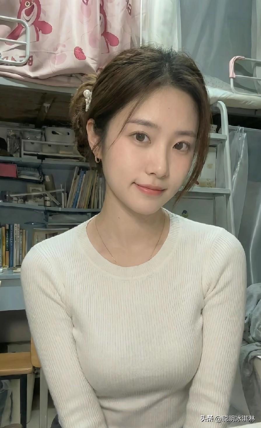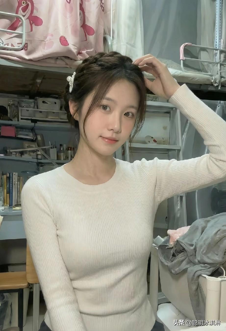 温柔少女心,甜美发型搭配白色毛衣,秒变校园女神!