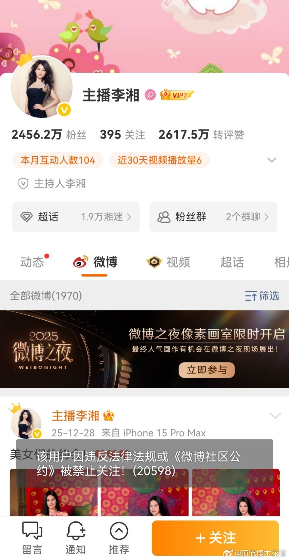 李湘多个社交平台禁止关注,全平台账号被禁关,所以她这是发生了什么? 李湘全平台账号被禁止关注
