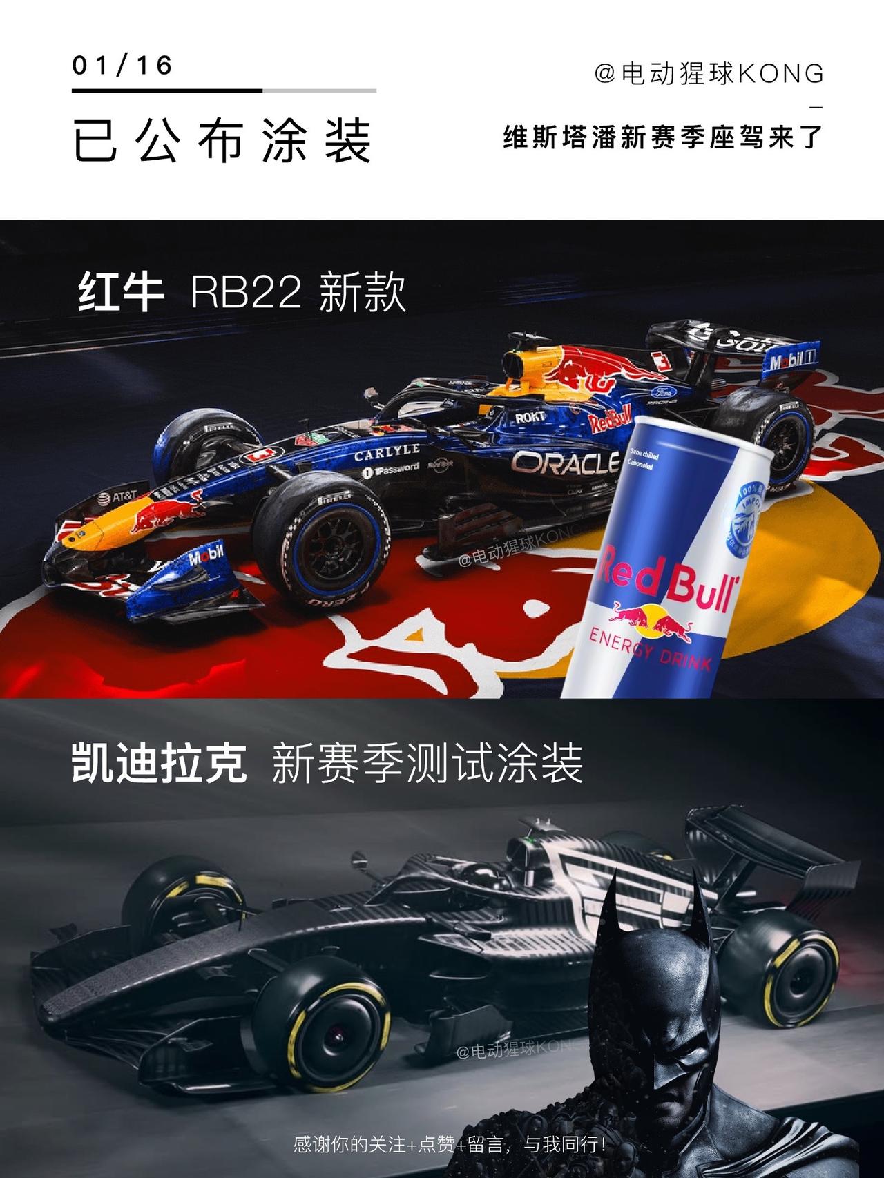 红牛车队发布新车R22,换装福特动力总成,涂装也采用了更亮的蓝色,不过有点装衫自家的饮料,不知道是不是巧合🐶还是凯子这套测试涂装帅啊,希望潘子这赛季能夺冠,你觉得有希望吗?维斯塔潘 红牛车队