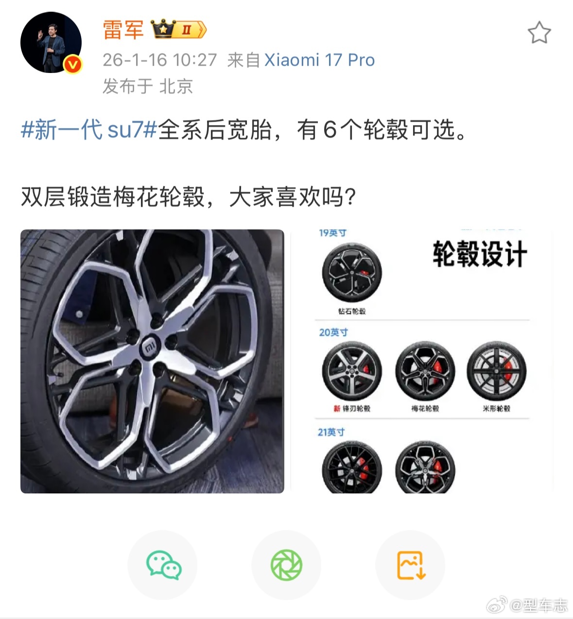 新一代su7雷军提到的“全系后宽胎”,指的应该是前后轮胎宽度不同的搭配,比如前