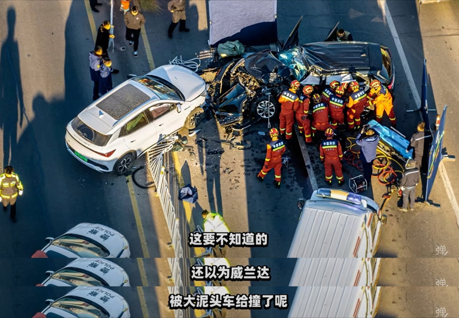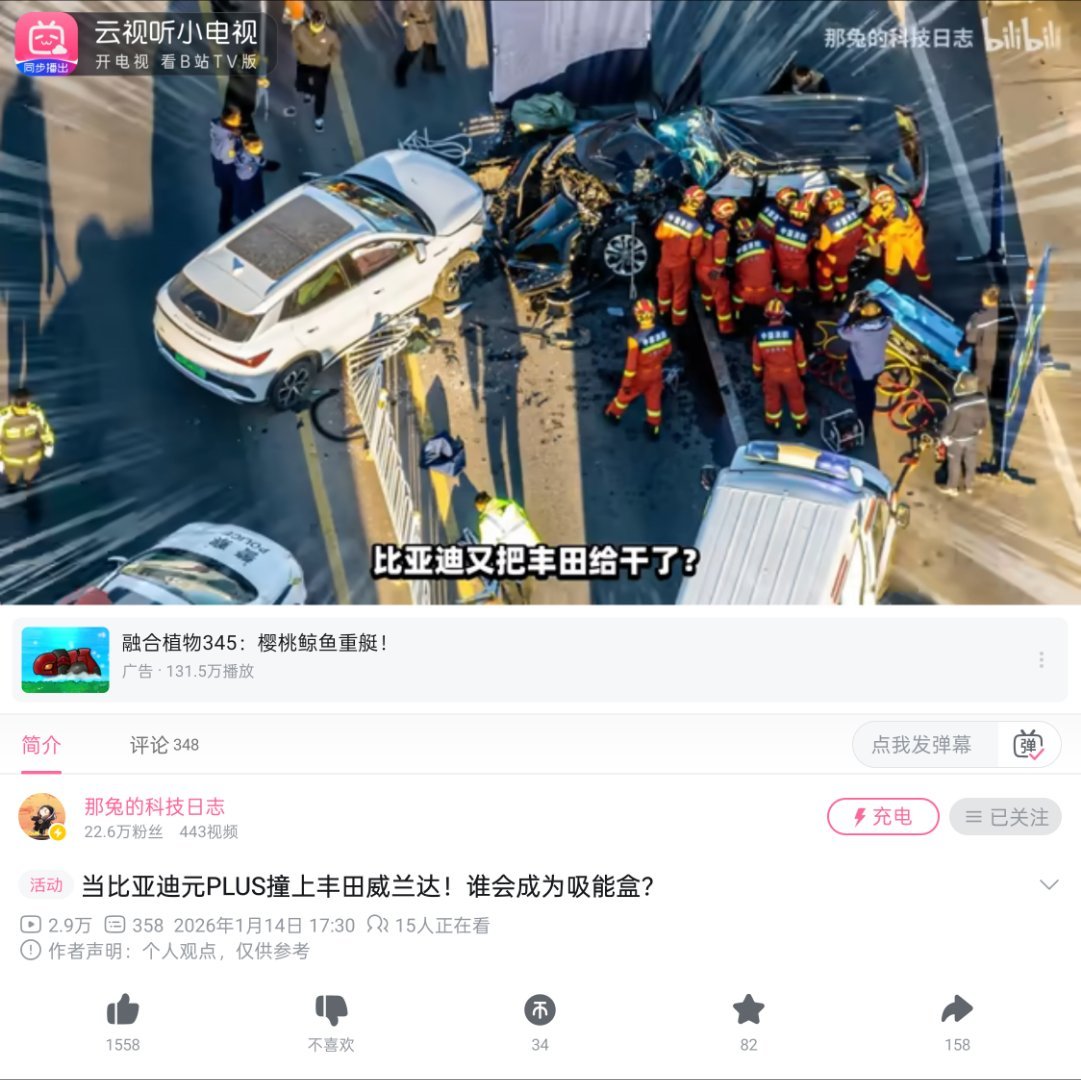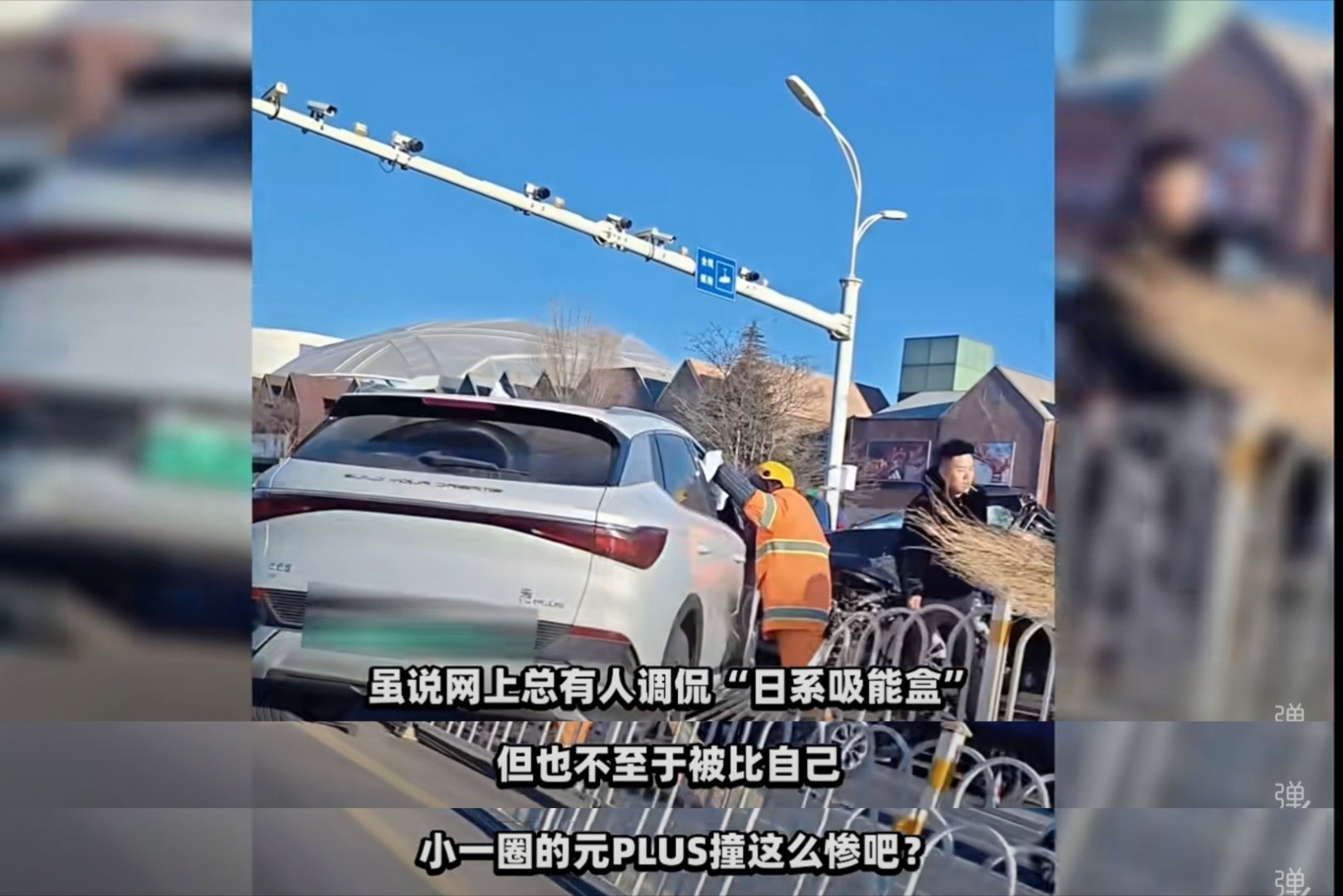刷到了那兔视频在尬吹元PLUS的安全性,跟那瞎带节奏,忍不住吐槽一下。视频里针对元PLUS和丰田威兰达的一起对撞事故是这么说的:“元PLUS只是保险杠脱落,对面的威兰达整个车头都被干没了,A柱变直角,轮胎干成45度”“都调侃日系吸能,但也不至于被小一圈的元PLUS撞得这么惨吧?”“不知道的还以为威兰达被大泥头车撞了呢。”听听,这节奏带得飞起!光看这描述,是不是觉得元PLUS的碰撞安全性已经领先丰田几个时代了?一个“擦伤”,一个“报废”,天壤之别啊!要不是干这行的,我差点就信了。同为紧凑型SUV,安全性真能差出几个量级?咱们看事实:威兰达在2021年中保研碰撞测试里,拿的是G(优秀),包括在25%小重叠偏置以及车身结构,都是优秀评级。按常理说,威兰达的骨架也是很硬的。那为什么现场看起来威兰达输得那么惨?真相其实在“碰撞工况”里。仔细复盘视频细节你会发现:元PLUS在撞击前先跨过了护栏,车头被护栏挑起,导致实际碰撞时,它是用自己车头下半部分,去撞了威兰达车头的上半部分。大家知道,乘用车正面扛撞挑大梁的是前纵梁,而纵梁是在车头比较靠下的位置。元PLUS这波是撞了个正好,车头的吸能设计完美发挥;但威兰达就惨了,撞击点太高,横梁纵梁没接到力,只能靠上半部分A柱硬扛。这其实和钻大卡车车底的“钻底工况”有些类似,是所有乘用车的噩梦。再看现场细节就更清晰了:1. 元PLUS真的只是掉了个保险杠吗? 气囊全开,说明碰撞G值并不小,仔细看前横梁已经明显变形了。俯视图里引擎盖几乎没变形,恰恰说明受力点全在下面。2. 威兰达为什么“趴了”?原视频说的“轮胎干成45度”,正是因为载荷作用在上部,车头从上面被压垮了。而纵梁没怎么溃缩,说明力直接绕过了设计的吸能区,全卸到了A柱上。这工况,换谁都不好受。我猜肯定有人要杠:我就看结果,反正元PLUS撞赢了!我想强调的是,元PLUS安全性是可以,但你不能这么尬吹。拿一个极端有利的特殊工况去玩拉踩,这种回旋镖早晚会扎到自己身上。如果两车位置对调,结果大概率就反过来了。