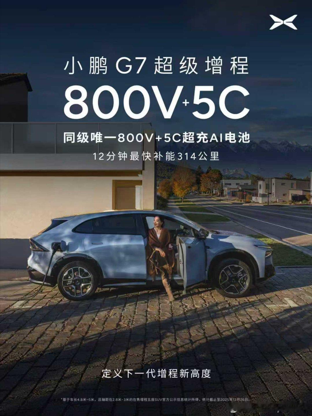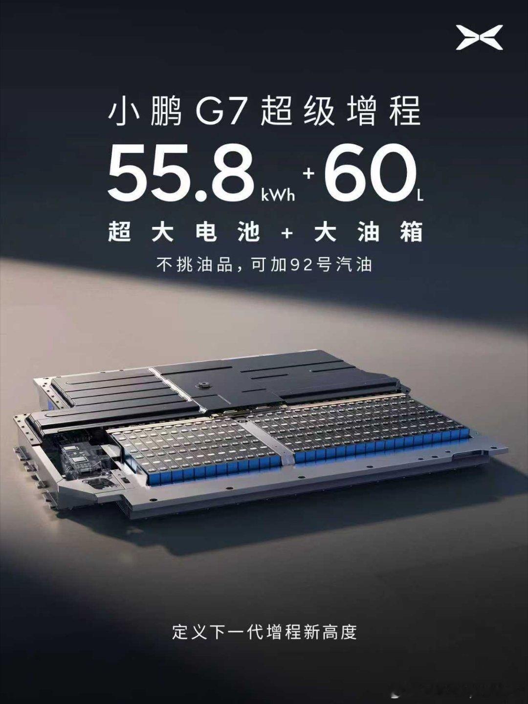 给大家汇报一下G7的好消息~小鹏G7超级增程上市以来市场反响热烈,销量已接近全车型的七成,成为销售主力。小鹏G7增程版销量占比近7成搭载了55.8kWh大电池以及60L大油箱,小鹏G7 做到全球最长的CLTC综合续航1704公里 满油满电跨六省济南直达哈尔滨