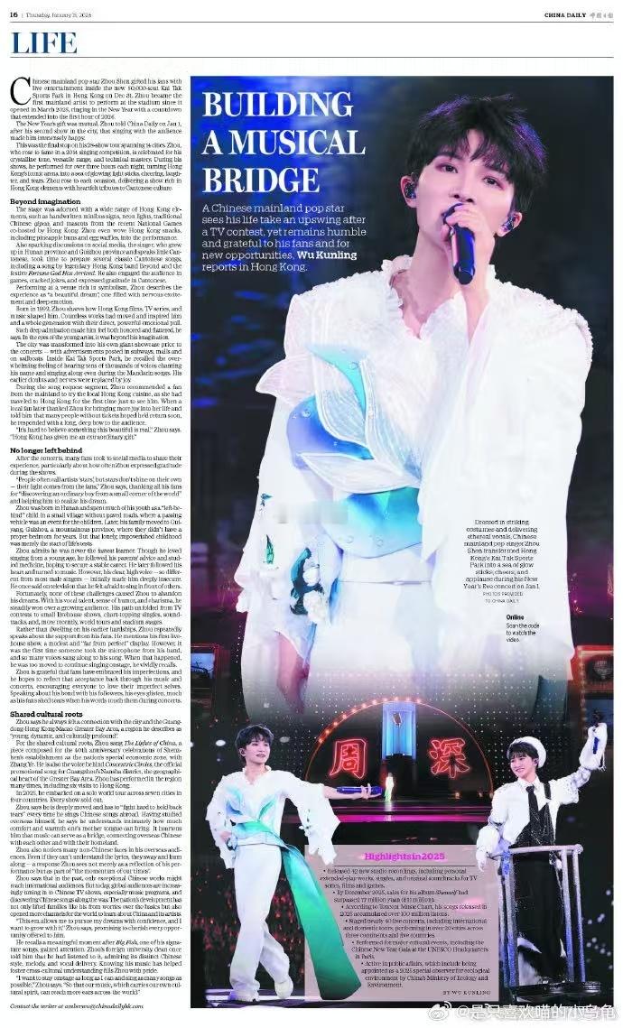 中国日报专访周深周深说与观众同台唱歌无比幸福荧光点亮星海,歌声传递热爱,他直言