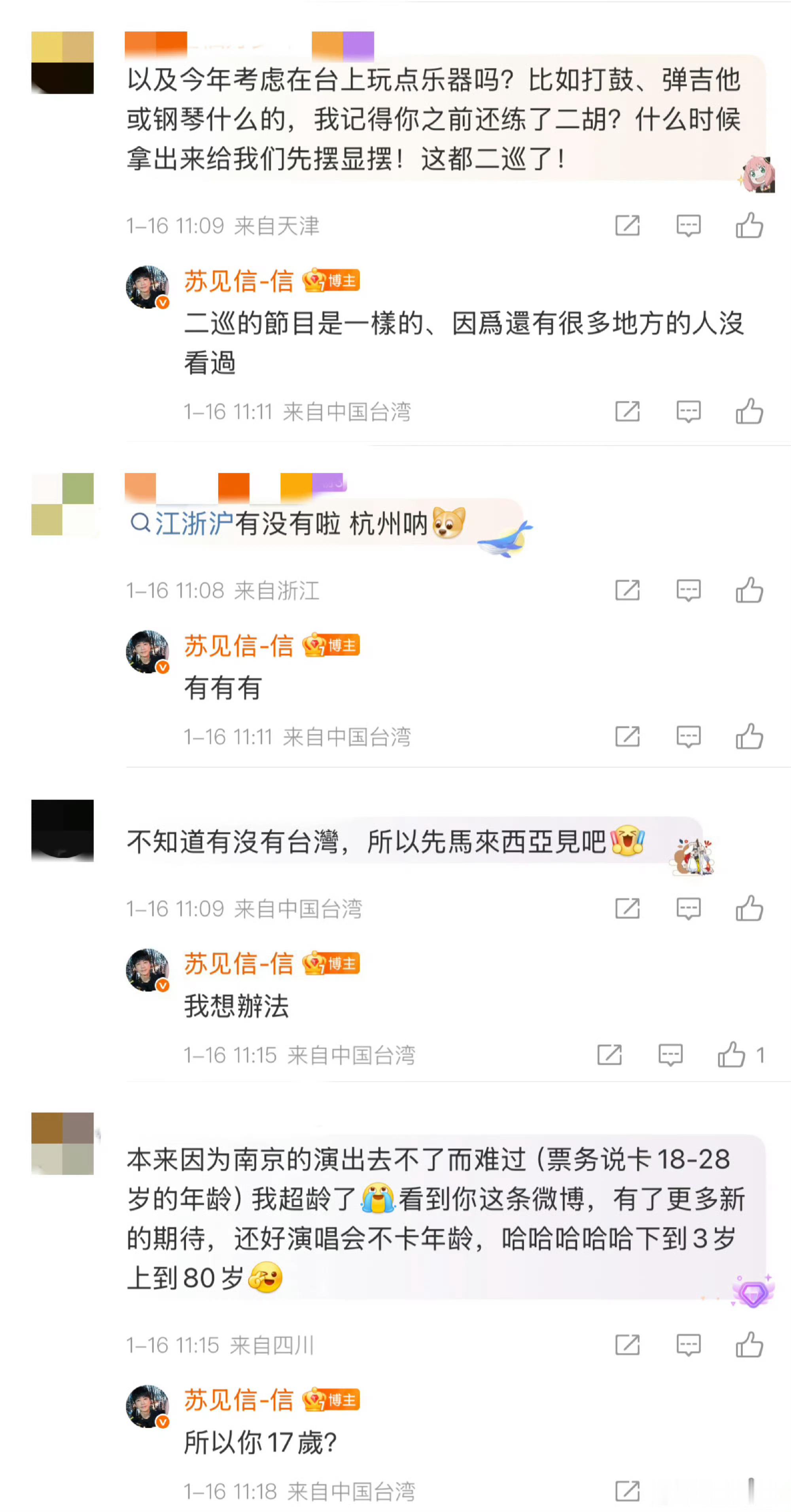 苏见信在评论区翻尽兴了刚刷到巡演官宣就看到翻牌,苏见信你是懂怎么让粉丝开