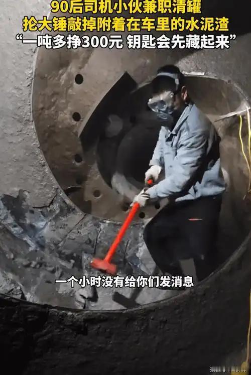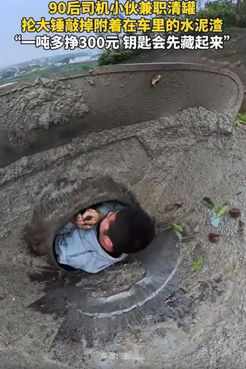 湖南90后司机钻罐砸水泥 每吨多赚300元 保命操作太硬核 (文章内容仅供参考无任何不良引导) 湖南一位90后水泥罐车司机 兼职清罐靠锤砸凝固水泥渣 每吨净赚300元 这份“灰堆里淘金”的活计 惊险又透着精明 别以为清罐只是傻力气活 司机得钻进密不透风的水泥罐内部 罐里全是板结的水泥硬块 一锤子下去粉尘飞扬 呛得人直皱眉 还得时刻提防松动的碎块砸脑袋 简直是在“风险窝”里讨生活 但这位司机的安全意识拉满 口罩安全帽全程焊在身上 每小时必跟外界报次平安 生怕出意外没人知晓 还特意把车钥匙藏到隐蔽处 杜绝他人误操作启动车辆 这套保命流程比上班打卡还准时 网友看完纷纷感叹 这钱是拿胆量换的 密闭空间作业风险可不是闹着玩 粉尘吸多了伤肺 坠物更是防不胜防 但司机的防护措施做得滴水不漏 该谨慎的地方一点不含糊 高收入背后藏着高风险 这位90后用实际行动告诉大家 赚钱没有捷径 危险活计更得把安全放在第一位 想靠兼职增收的朋友可得学着点 防护不到位 赚再多钱也白搭 你觉得这份每吨多赚300元的兼职值不值 换作是你会愿意冒这个险吗