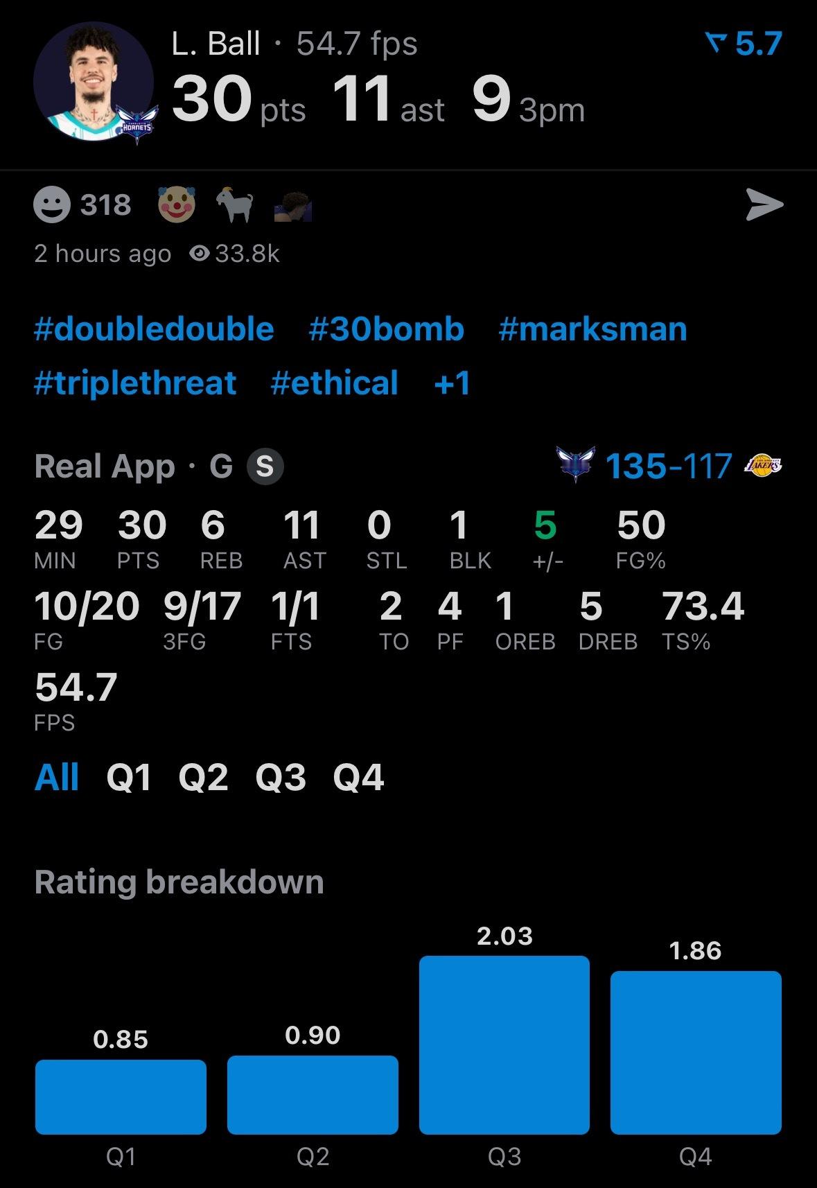 三球30分11助攻6篮板,9个三分射杀湖人。
