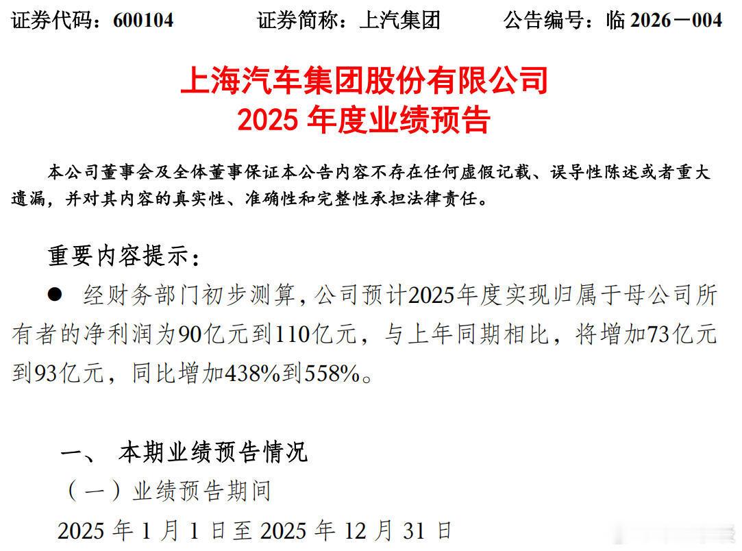 上汽集团2025年业绩预增改革奏效,上汽集团2025年业绩预增。上市公司上汽集