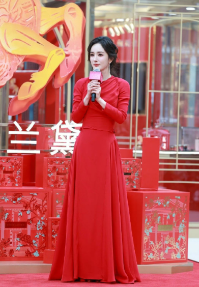 杨紫线下活动生图,身穿一身红裙,温柔明艳的美