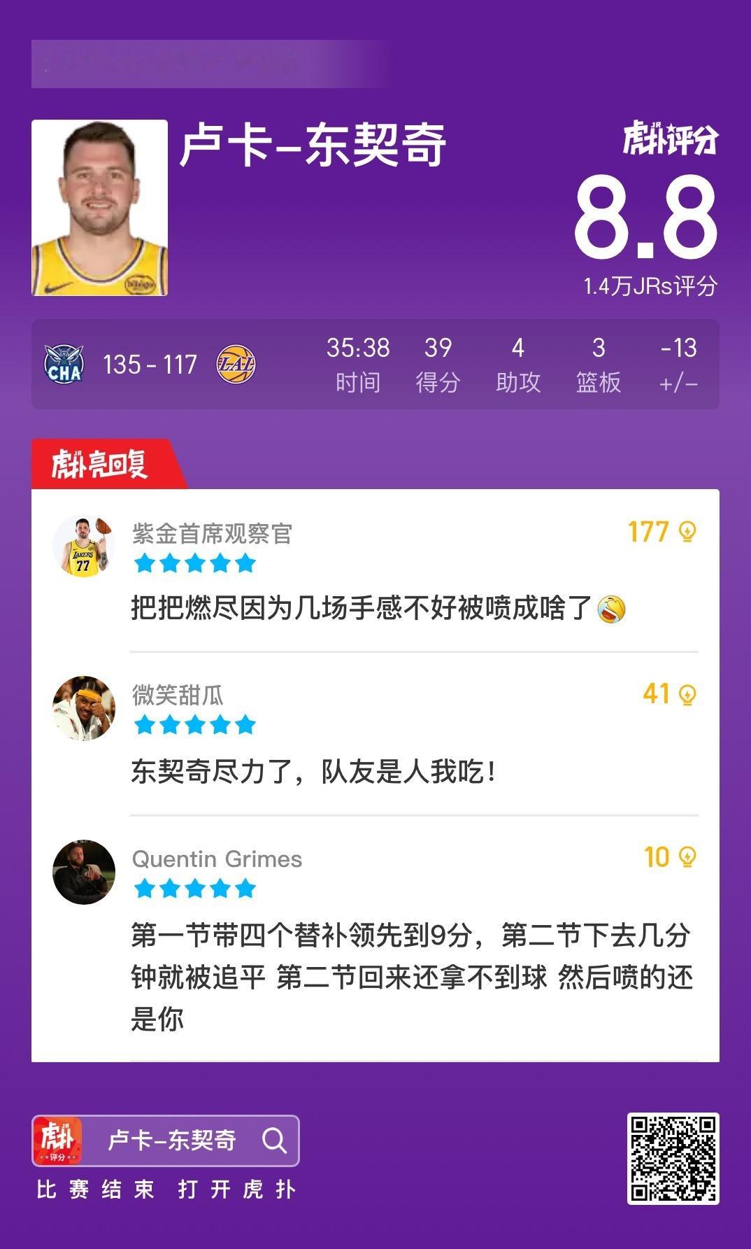 防守告急!湖人主场117-135惨负黄蜂,湖人本赛季已第11次让对手得到120+得分NBA常规赛,湖人主场迎战黄蜂的比赛已经结束,最终湖人以117-135负于黄蜂。湖人球员勒布朗-詹姆斯全场投篮19中10,三分6中3、罚球7中6得到29分9篮板6助攻2抢断1盖帽。卢卡-东契奇全场投篮26中15,三分11中6、罚球7中3得到39分3篮板4助攻。此役过后,湖人已连续2个赛季主场负于黄蜂,目前湖人战绩为24胜15负。根据数据统计,湖人本赛季已11次让对手得分突破120分,主场战绩仅为11胜8负。黄蜂vs湖人黄蜂战胜湖人东契奇空砍39分
